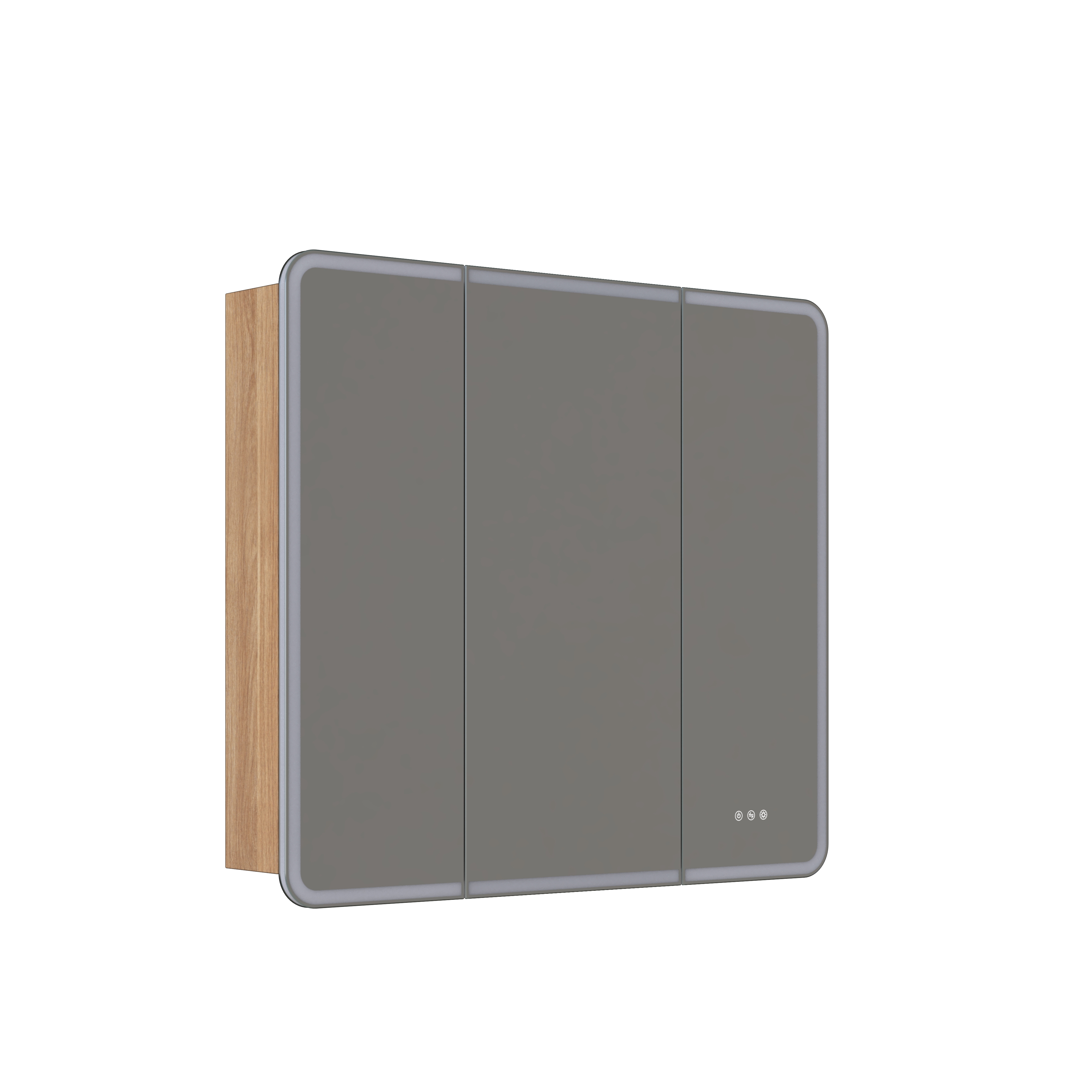 Radience-spejlskabet forener moderne design og praktisk opbevaring i ét. Bag de elegante spejldøre finder du masser af plads til dine daglige toiletartikler, så du nemt kan holde orden på badeværelset. Lysrammen rundt i kanten giver en smuk indramning af dit spejlbillede og skaber et behageligt lys, som du kan styre trådløst direkte fra døren. Med anti-dug funktion i spejlet og mulighed for forskellige størrelser og farver er Radience både en praktisk og stilren løsning – perfekt til tidens trend, hvor badeværelset skal være både funktionelt og personligt. OBS: Der er et opstartstillæg (BI1) til produkter med valgfri farve. Det betales én gang pr. valgfri farve uanset antal produkter.