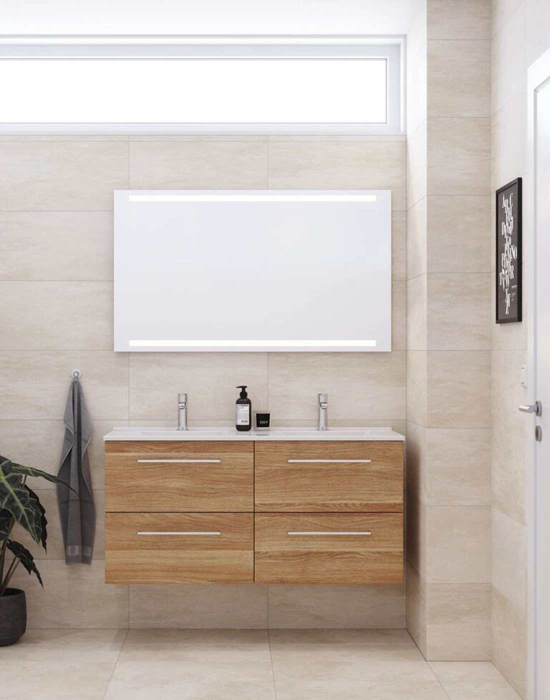 Repeat spejlet er et stilfuldt og praktisk valg til dit badeværelse. Spejlet har indbygget lys i top og bund, og det skaber en optimal belysning i rummet. Dette spejl er uden sensor. Spejlet er af utrolig høj kvalitet, hvilket både gør det langtidsholdbart og bæredygtigt. Til spejlet kan du tilkøbe et varmelegeme, så du undgår at spejlet dugger, når du er i bad. Varmelegemet skal du selv montere.