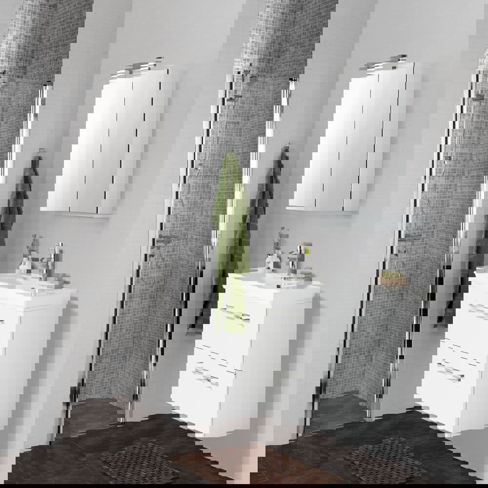Select spejlskabet er meget mere end bare et spejlskab - det er din personlige opgradering til badeværelset. Vælg dine egne lamper og skab den perfekte belysning til at starte dagen med stil. Med spejlskabet får du masser af opbevaring samt en stikkontakt inde i spejlskabet til dine elektriske apparater. Oplev bekvemmelighed og elegance i ét med Select spejlskabet - din daglige følgesvend til en strålende morgen.