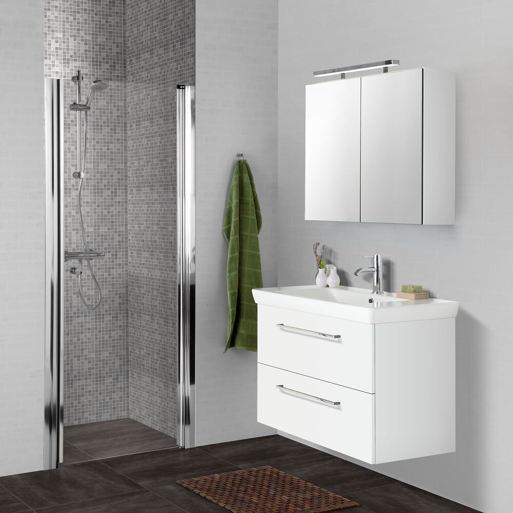 Select spejlskabet er meget mere end bare et spejlskab - det er din personlige opgradering til badeværelset. Vælg dine egne lamper og skab den perfekte belysning til at starte dagen med stil. Med spejlskabet får du masser af opbevaring samt en stikkontakt inde i spejlskabet til dine elektriske apparater. Oplev bekvemmelighed og elegance i ét med Select spejlskabet - din daglige følgesvend til en strålende morgen.