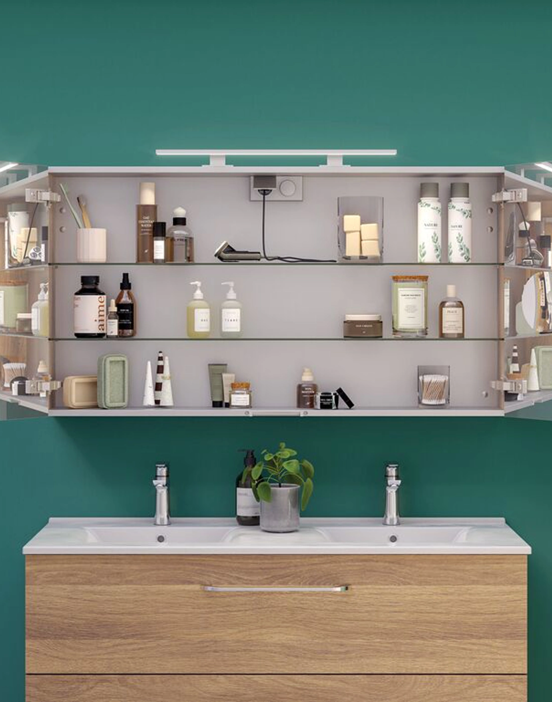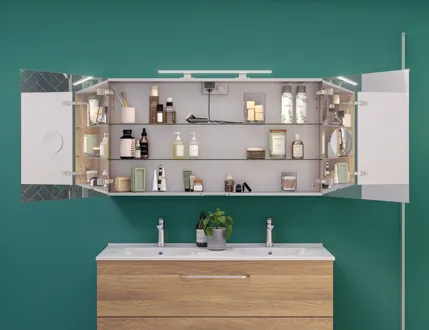 Select spejlskabet er meget mere end bare et spejlskab - det er din personlige opgradering til badeværelset. Vælg dine egne lamper og skab den perfekte belysning til at starte dagen med stil. Med spejlskabet får du masser af opbevaring samt en stikkontakt inde i spejlskabet til dine elektriske apparater. Oplev bekvemmelighed og elegance i ét med Select spejlskabet - din daglige følgesvend til en strålende morgen.