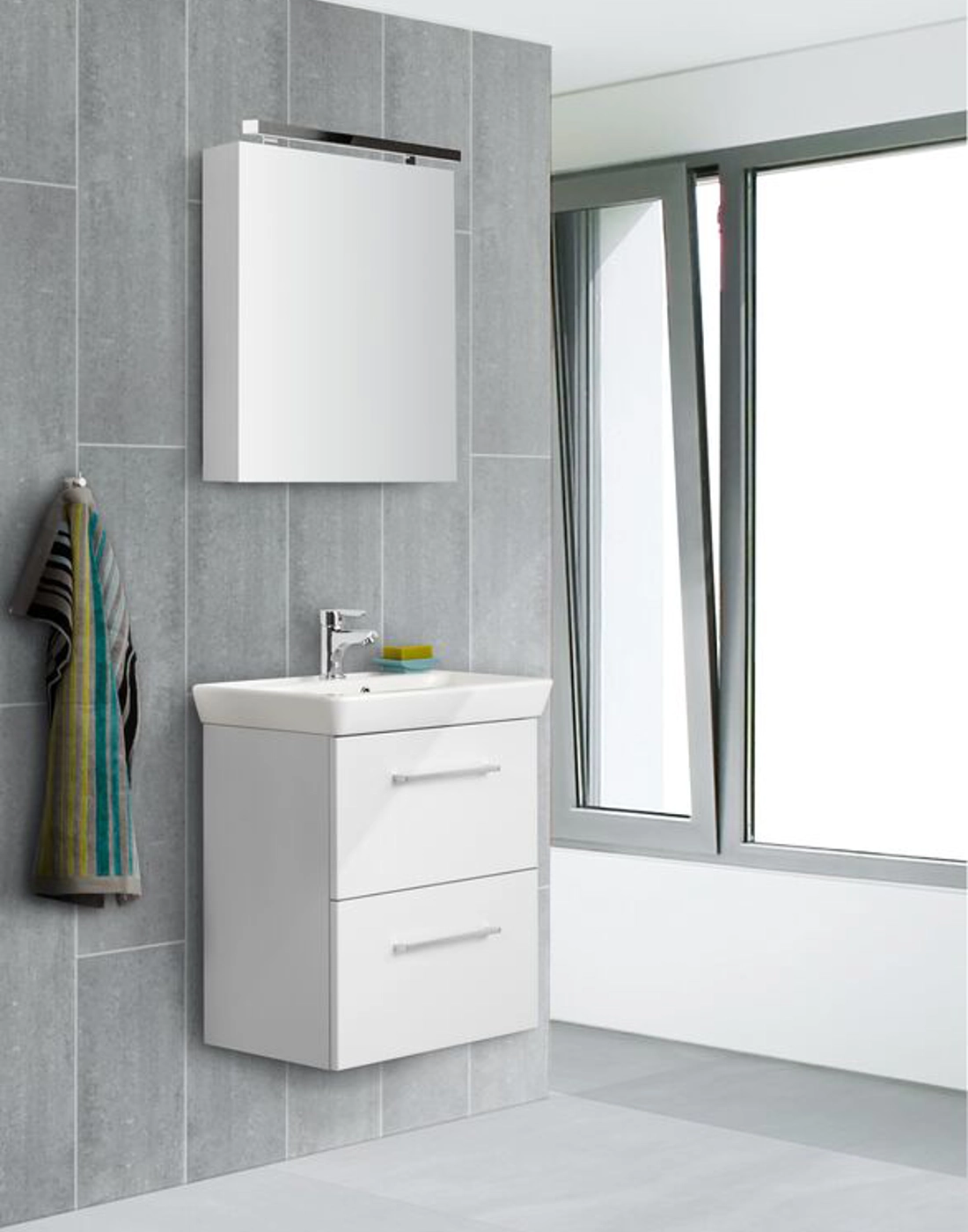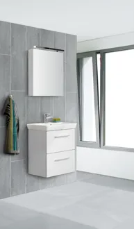 Select spejlskabet er meget mere end bare et spejlskab - det er din personlige opgradering til badeværelset. Vælg dine egne lamper og skab den perfekte belysning til at starte dagen med stil. Med spejlskabet får du masser af opbevaring samt en stikkontakt inde i spejlskabet til dine elektriske apparater. Oplev bekvemmelighed og elegance i ét med Select spejlskabet - din daglige følgesvend til en strålende morgen.