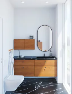 Dansani Calidris skabe er en smart løsning til badeværelser med begrænset plads. Med en smal dybde på kun 16 cm får du rigeligt med opbevaringsplads, selv til mindre badeværelser. Disse skabe kombinerer pladsbesparende design med funktionalitet og stil, hvilket gør dem ideelle til at organisere toiletartikler, shampoo, cremer og hvad du ellers har brug for på badeværelset. Uanset badeværelsets størrelse tilføjer Dansani Calidris skabe en praktisk og elegant opbevaringsløsning. OBS: Der er et opstartstillæg (BI1) til produkter med eg og valgfri farve. Betales én gang pr. eg og valgfri farve uanset antal produkter. Husk at tilvælge de små praktiske ting til dine badeværelsesmøbler, som du dagligt vil glæde dig over. Fx lys i skuffer og skabe, indbygget el-stik og dæmpet sensorlys under møblet, som guider det natlige badeværelsesbesøg. Tilvalg bestilles samtidig med dine møbler.