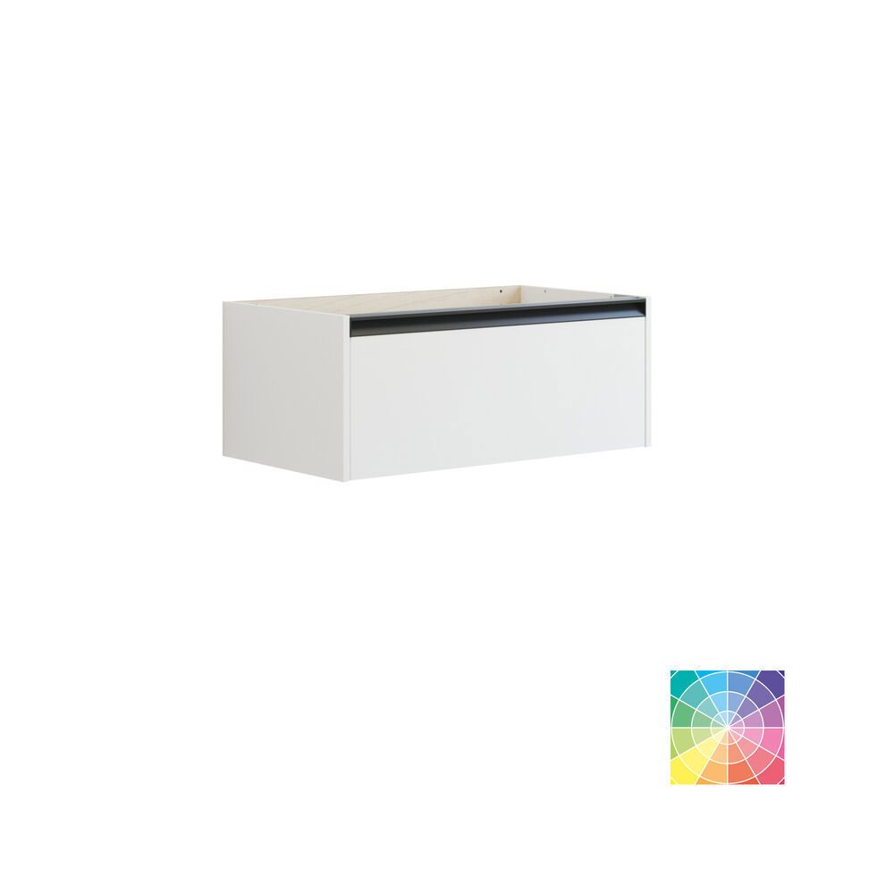 Dette skab med integreret greb er det ideelle valg til et moderne badeværelse med behov for ekstra opbevaring. Skabets enkeltstående skuffe uden afløbsudskæring tilbyder rigelig plads til dine produkter, og grebets diskrete udformning giver en elegant og harmonisk finish. Det sorte greb tilfører et raffineret touch, og ved valg af en valgfri farve matcher grebet skabets farve for et ensartet look. Kombiner skabet med et vaskeskab og en bordplade for et unikt og asymmetrisk badeværelsesdesign, der oser af stil og funktionalitet. OBS: Der er et opstartstillæg (BI1) til produkter med valgfri farve. Det betales én gang pr. valgfri farve uanset antal produkter. Husk at tilvælge de små praktiske ting til dine badeværelsesmøbler, som du dagligt vil glæde dig over. Fx lys i skuffer og skabe, indbygget el-stik og dæmpet sensorlys under møblet, som guider det natlige badeværelsesbesøg. Tilvalg bestilles samtidig med dine møbler.