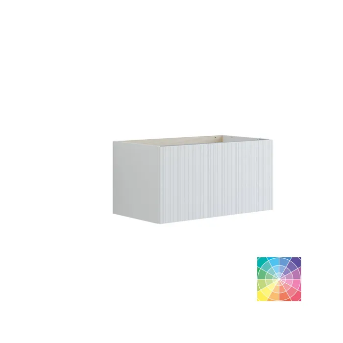 Oplev dette skab med én skuffe og skab din egen badeværelsesoase. Dette funktionelle skab er det perfekte komplement til dit vaskeskab, med en dyb skuffe, der giver dig masser af opbevaringsplads til dine toiletartikler. Den unikke riflede front giver et iøjnefaldende design, der skiller sig ud og tilføjer en moderne touch. Med skabet får du både stil og funktionalitet, så du kan holde dit badeværelse organiseret og elegant. Gør dit rum til et sted, der oser af stil og velvære. OBS: Der er et opstartstillæg (BI1) til produkter med valgfri farve. Det betales én gang pr. valgfri farve uanset antal produkter. Husk at tilvælge de små praktiske ting til dine badeværelsesmøbler, som du dagligt vil glæde dig over. Fx lys i skuffer og skabe, indbygget el-stik og dæmpet sensorlys under møblet, som guider det natlige badeværelsesbesøg. Tilvalg bestilles samtidig med dine møbler.