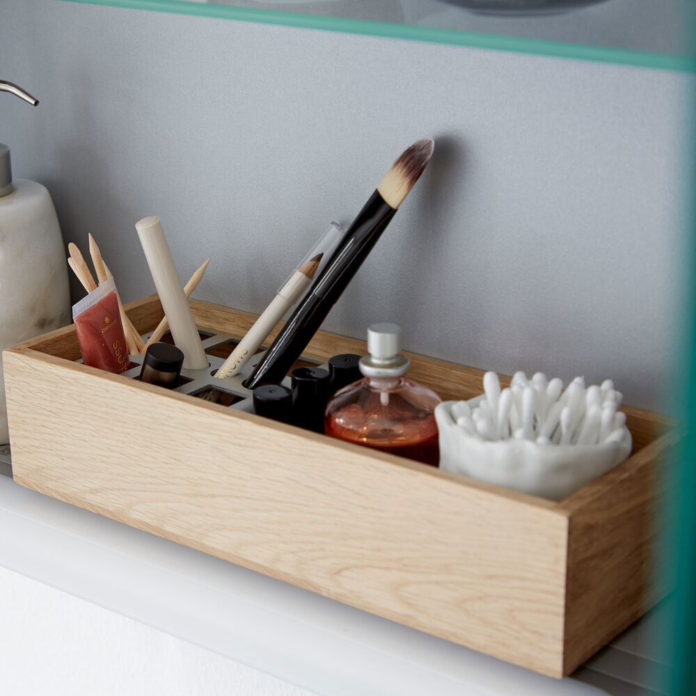 Dansani Calidris skabe er en smart løsning til badeværelser med begrænset plads. Med en smal dybde på kun 16 cm får du rigeligt med opbevaringsplads, selv til mindre badeværelser. Disse skabe kombinerer pladsbesparende design med funktionalitet og stil, hvilket gør dem ideelle til at organisere toiletartikler, shampoo, cremer og hvad du ellers har brug for på badeværelset. Uanset badeværelsets størrelse tilføjer Dansani Calidris skabe en praktisk og elegant opbevaringsløsning. OBS: Der er et opstartstillæg (BI1) til produkter med eg og valgfri farve. Betales én gang pr. eg og valgfri farve uanset antal produkter. Husk at tilvælge de små praktiske ting til dine badeværelsesmøbler, som du dagligt vil glæde dig over. Fx lys i skuffer og skabe, indbygget el-stik og dæmpet sensorlys under møblet, som guider det natlige badeværelsesbesøg. Tilvalg bestilles samtidig med dine møbler.