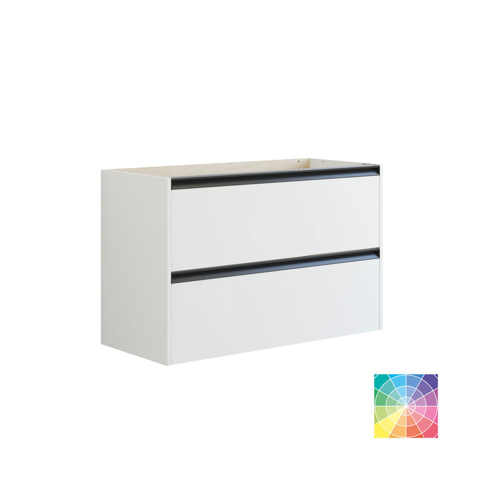Optimer din badeværelsesindretning med et underskab med integreret greb og to skuffer. De smarte skuffer giver nem adgang til dine ting, mens det stilrene design skaber et moderne udtryk. Den harmoniske farve sikrer, at skabet passer perfekt ind i dit badeværelse. Uanset om det står alene med en bordplade eller som en del af en samlet løsning med et vaskeskab, vil dette skab tilføje både funktionalitet og elegance til rummet. OBS: Der er et opstartstillæg (BI1) til produkter med valgfri farve. Det betales én gang pr. valgfri farve uanset antal produkter. Husk at tilvælge de små praktiske ting til dine badeværelsesmøbler, som du dagligt vil glæde dig over. Fx lys i skuffer og skabe, indbygget el-stik og dæmpet sensorlys under møblet, som guider det natlige badeværelsesbesøg. Tilvalg bestilles samtidig med dine møbler.