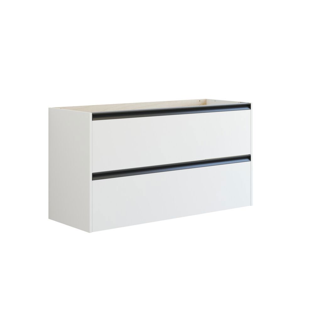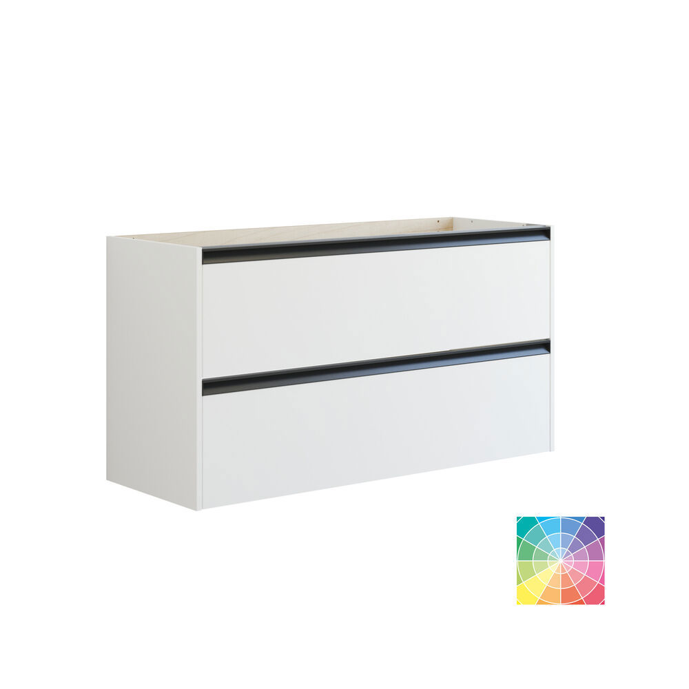 Optimer din badeværelsesindretning med et underskab med integreret greb og to skuffer. De smarte skuffer giver nem adgang til dine ting, mens det stilrene design skaber et moderne udtryk. Den harmoniske farve sikrer, at skabet passer perfekt ind i dit badeværelse. Uanset om det står alene med en bordplade eller som en del af en samlet løsning med et vaskeskab, vil dette skab tilføje både funktionalitet og elegance til rummet. OBS: Der er et opstartstillæg (BI1) til produkter med valgfri farve. Det betales én gang pr. valgfri farve uanset antal produkter. Husk at tilvælge de små praktiske ting til dine badeværelsesmøbler, som du dagligt vil glæde dig over. Fx lys i skuffer og skabe, indbygget el-stik og dæmpet sensorlys under møblet, som guider det natlige badeværelsesbesøg. Tilvalg bestilles samtidig med dine møbler.