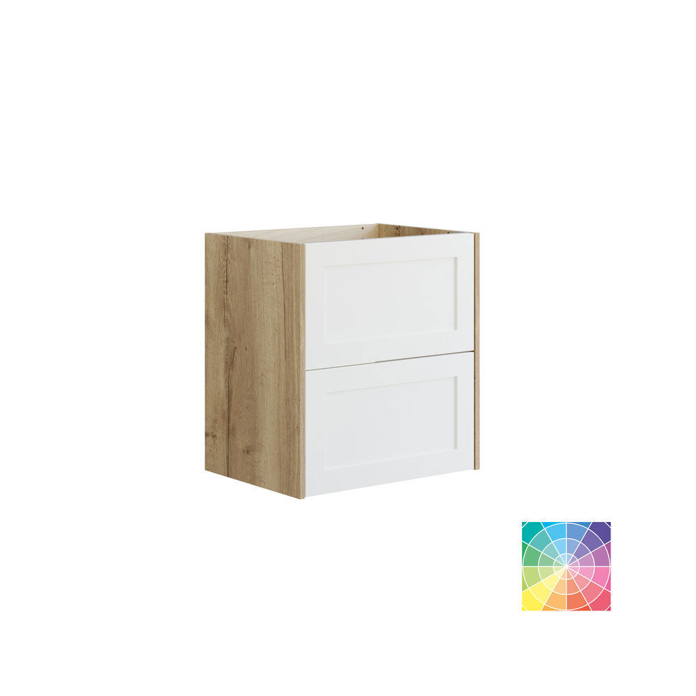 Giv dit badeværelse et elegant touch med et underskab med en klassisk ramme og to skuffer. Rammefronten tilføjer et moderne og stilfuldt udtryk, der passer til enhver indretning. Skabets to skuffer giver dig masser af opbevaringsplads, hvilket hjælper dig med at holde styr på dine badeværelsesartikler. Uanset om det bruges med en bordplade ovenpå eller i kombination med et vaskeskab, vil dette skab bidrage til en organiseret og stilfuld atmosfære i dit badeværelse. OBS: Der er et opstartstillæg (BI1) til produkter med valgfri farve. Det betales én gang pr. valgfri farve uanset antal produkter. Husk at tilvælge de små praktiske ting til dine badeværelsesmøbler, som du dagligt vil glæde dig over. Fx lys i skuffer og skabe, indbygget el-stik og dæmpet sensorlys under møblet, som guider det natlige badeværelsesbesøg. Tilvalg bestilles samtidig med dine møbler.