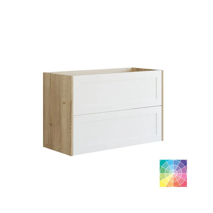 Giv dit badeværelse et elegant touch med et underskab med en klassisk ramme og to skuffer. Rammefronten tilføjer et moderne og stilfuldt udtryk, der passer til enhver indretning. Skabets to skuffer giver dig masser af opbevaringsplads, hvilket hjælper dig med at holde styr på dine badeværelsesartikler. Uanset om det bruges med en bordplade ovenpå eller i kombination med et vaskeskab, vil dette skab bidrage til en organiseret og stilfuld atmosfære i dit badeværelse. OBS: Der er et opstartstillæg (BI1) til produkter med valgfri farve. Det betales én gang pr. valgfri farve uanset antal produkter. Husk at tilvælge de små praktiske ting til dine badeværelsesmøbler, som du dagligt vil glæde dig over. Fx lys i skuffer og skabe, indbygget el-stik og dæmpet sensorlys under møblet, som guider det natlige badeværelsesbesøg. Tilvalg bestilles samtidig med dine møbler.