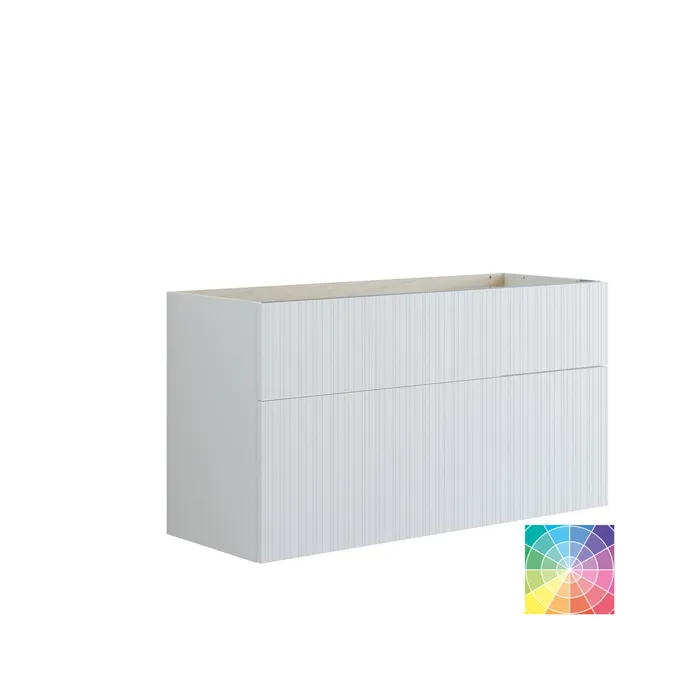 Skab et stilfuldt badeværelse med disse skabe, der har 2 skuffer og en højde på 64 cm. Den høje bundskuffe giver dig rigelig plads til opbevaring af dine badeværelsesartikler, mens den riflede front tilføjer en moderne og unik detalje til designet. Disse skabe kan anvendes for sig selv eller kombineres med et vaskeskab samt en bordplade med bordstående vask for en spændende asymmetrisk løsning. Du har mulighed for at vælge mellem forskellige farver, så du kan tilpasse skabene til din personlige stil. Disse skabe med 2 skuffer tilbyder både funktionalitet og et æstetisk udtryk, der gør dit badeværelse mere elegant og organiseret. OBS: Der er et opstartstillæg (BI1) til produkter med valgfri farve. Det betales én gang pr. valgfri farve uanset antal produkter. Husk at tilvælge de små praktiske ting til dine badeværelsesmøbler, som du dagligt vil glæde dig over. Fx lys i skuffer og skabe, indbygget el-stik og dæmpet sensorlys under møblet, som guider det natlige badeværelsesbesøg. Tilvalg bestilles samtidig med dine møbler.