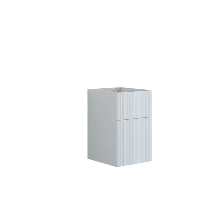 Skab et stilfuldt badeværelse med disse skabe, der har 2 skuffer og en højde på 64 cm. Den høje bundskuffe giver dig rigelig plads til opbevaring af dine badeværelsesartikler, mens den riflede front tilføjer en moderne og unik detalje til designet. Disse skabe kan anvendes for sig selv eller kombineres med et vaskeskab samt en bordplade med bordstående vask for en spændende asymmetrisk løsning. Du har mulighed for at vælge mellem forskellige farver, så du kan tilpasse skabene til din personlige stil. Disse skabe med 2 skuffer tilbyder både funktionalitet og et æstetisk udtryk, der gør dit badeværelse mere elegant og organiseret. OBS: Der er et opstartstillæg (BI1) til produkter med valgfri farve. Det betales én gang pr. valgfri farve uanset antal produkter. Husk at tilvælge de små praktiske ting til dine badeværelsesmøbler, som du dagligt vil glæde dig over. Fx lys i skuffer og skabe, indbygget el-stik og dæmpet sensorlys under møblet, som guider det natlige badeværelsesbesøg. Tilvalg bestilles samtidig med dine møbler.