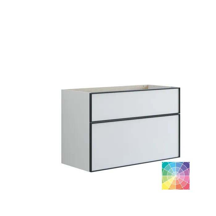 Disse skabe med 2 skuffer har en højde på 64 cm og en høj bundskuffe, som giver generøs opbevaringsplads til alle dine badeværelsesartikler. Den stilfulde sorte ramme tilføjer et moderne og sofistikeret præg til skabene. De kan anvendes alene eller i kombination med et vaskeskab og en bordplade med en bordstående vask for en interessant asymmetrisk effekt. Vælg blandt forskellige farver for at finde det skab, der passer bedst til dit badeværelse. Disse skabe med 2 skuffer kombinerer både æstetik og funktionalitet, hvilket gør dit badeværelse mere organiseret og stilfuldt. OBS: Der er et opstartstillæg (BI1) til produkter med valgfri farve. Det betales én gang pr. valgfri farve uanset antal produkter. Husk at tilvælge de små praktiske ting til dine badeværelsesmøbler, som du dagligt vil glæde dig over. Fx lys i skuffer og skabe, indbygget el-stik og dæmpet sensorlys under møblet, som guider det natlige badeværelsesbesøg. Tilvalg bestilles samtidig med dine møbler.