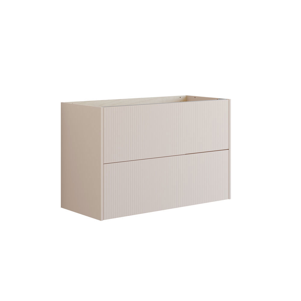 Forvandl dit badeværelse med dette elegante underskab med stribet front og to rummelige skuffer. De lodrette striber skaber et moderne spil i overfladen og tilfører møblet et unikt og eksklusivt udtryk. Med to rummelige skuffer får du optimal opbevaringsplads til alle dine badeværelsesartikler, så du nemt kan holde styr på hverdagen. Det stilrene design gør underskabet ideelt til moderne badeværelser. Du kan placere en bordplade ovenpå for et minimalistisk look eller kombinere det med et vaskeskab for et harmonisk helhedsindtryk. Underskabet fås i hvid, sand og lyseblå – tre farver, der hver især understøtter en personlig stil: klassisk og tidløs i hvid, varm og rolig i sand eller frisk og let i lyseblå. Et skab, der forener funktionalitet med raffineret design og giver dit badeværelse et eksklusivt præg. Husk at tilvælge de små praktiske ting til dine badeværelsesmøbler, som du dagligt vil glæde dig over. Fx lys i skuffer og skabe, indbygget el-stik og dæmpet sensorlys under møblet, som guider det natlige badeværelsesbesøg. Tilvalg bestilles samtidig med dine møbler.