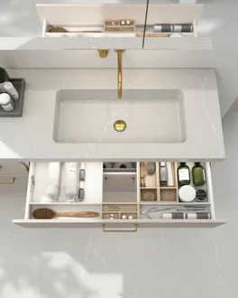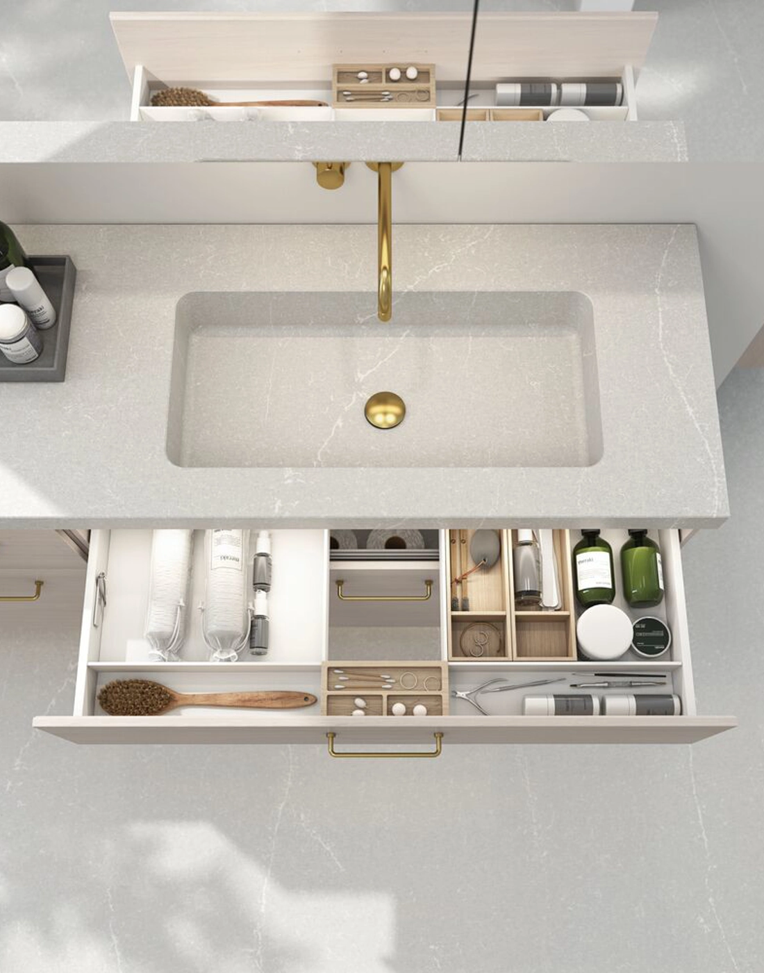 Dansani Calidris skabe med 2 skuffer er den perfekte løsning til dig, der ønsker smart og stilfuld opbevaring i dit badeværelse. Med Calidris får du gennemtænkt dansk design, og disse skabe er designet til at maksimere pladsen uden at gå på kompromis med funktionalitet eller æstetik. I de to rummelige skuffer kan du nemt organisere og opbevare dine toiletartikler, håndklæder og badeværelsesnødvendigheder på en overskuelig måde. Skabenes design er enkelt og tidløst, hvilket gør dem til et stilfuldt tilskud til ethvert badeværelse. OBS: Der er et opstartstillæg (BI1) til produkter med eg og valgfri farve. Betales én gang pr. eg og valgfri farve uanset antal produkter. Husk at tilvælge de små praktiske ting til dine badeværelsesmøbler, som du dagligt vil glæde dig over. Fx lys i skuffer og skabe, indbygget el-stik og dæmpet sensorlys under møblet, som guider det natlige badeværelsesbesøg. Tilvalg bestilles samtidig med dine møbler.