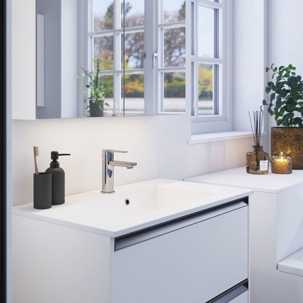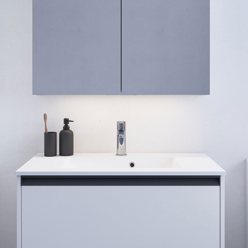 Få praktisk opbevaring og lækkert design med Style spejlskabet. Spejlskabet er perfekt til at opbevare alle dine cremer, deo, negleklipper, tandbørster og meget mere. Tilvælg lamper til spejlskabet og styr lysets temperatur og styrke med et enkelt tryk. Det flotte spejlskab indeholder magnetskinne, metalhylde, forstørrelsesspejl og stikkontakt, hvilket gør din morgen- og aftenrutine meget nemmere. OBS: Der er et opstartstillæg (BI1) til produkter med valgfri farve. Det betales én gang pr. valgfri farve uanset antal produkter.