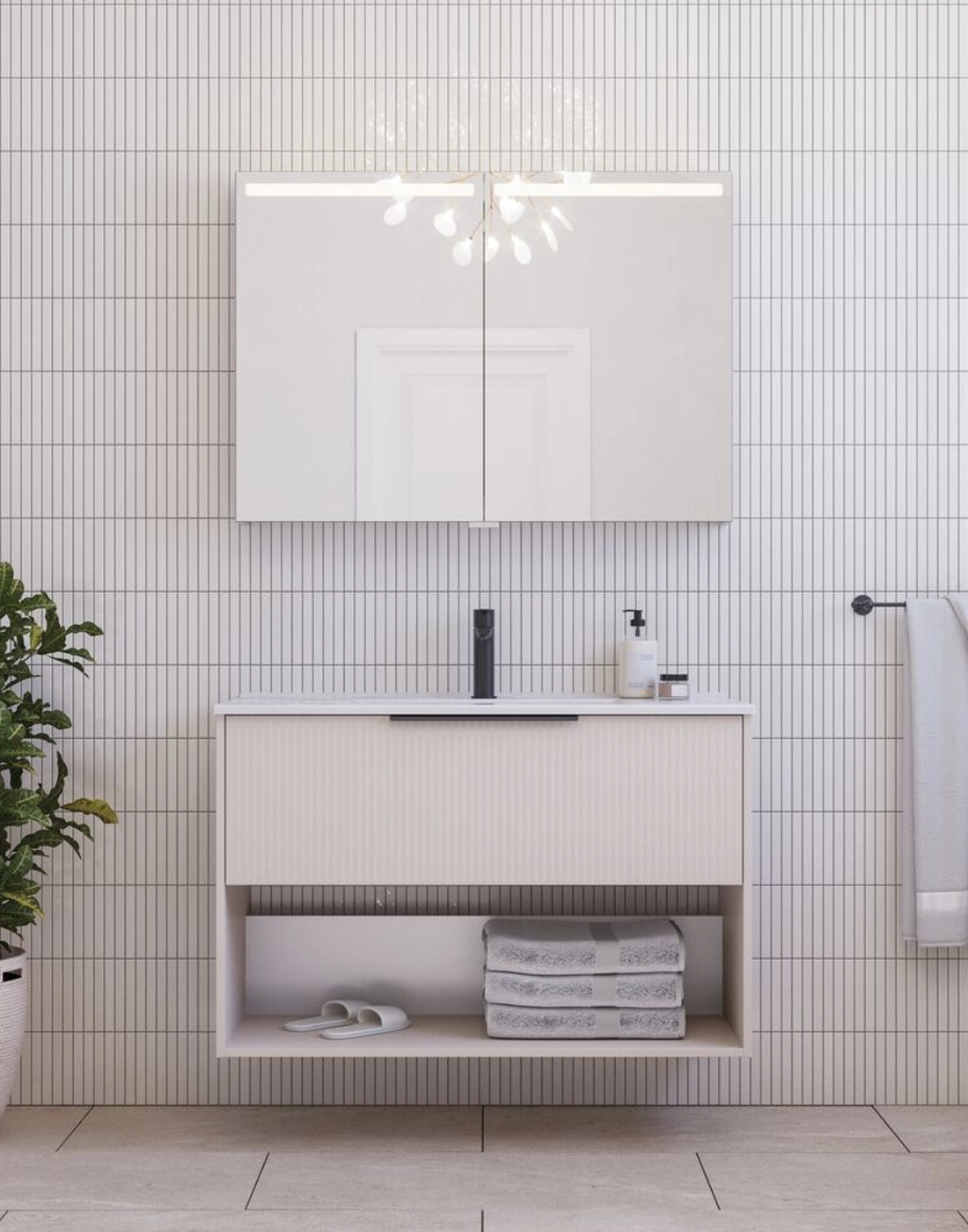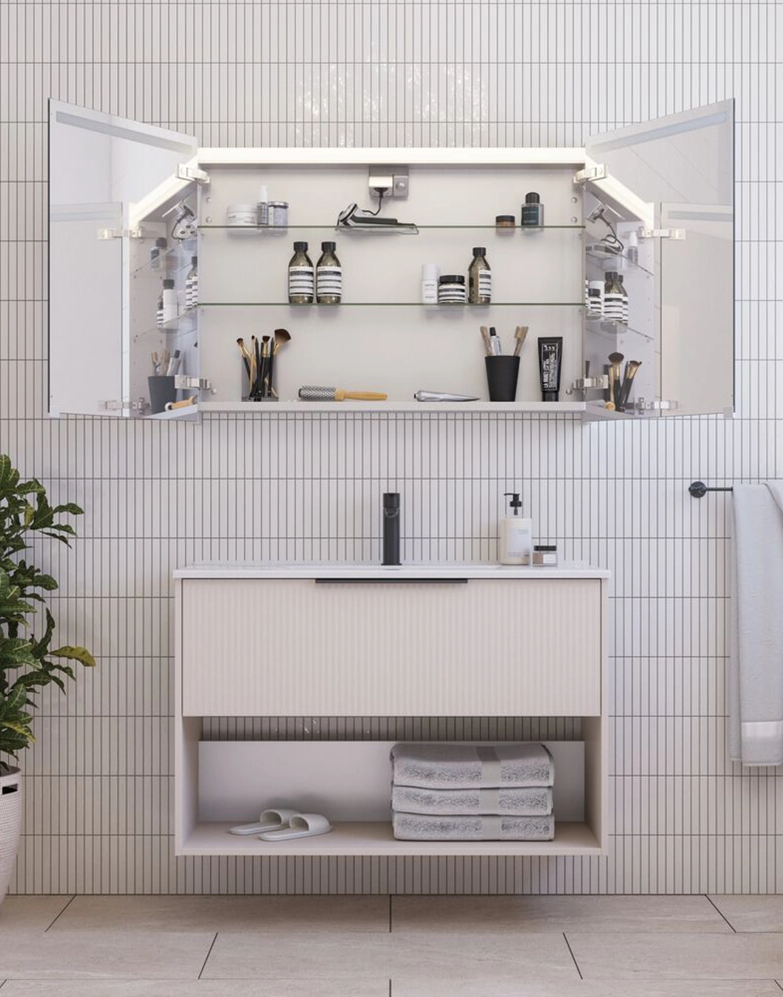 Løft din morgen til nye højder med Top spejlskabet. Dette spejlskab har en stribe af lys placeret øverst, og indeni spejlskabet finder du både masser af plads til opbevaring samt en stikkontakt med afbryder. Du får altså her meget mere end bare end man lige forventer. Spejlskabet fås selvfølgelig med gavle i flotte farver, så du kan matche spejlskabet til dit badeværelsesmøbler og resten af badeværelset.
