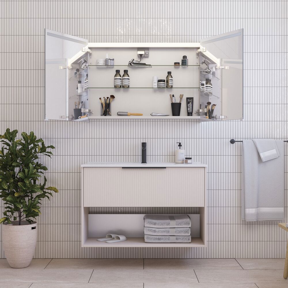 Løft din morgen til nye højder med Top spejlskabet. Dette spejlskab har en stribe af lys placeret øverst, og indeni spejlskabet finder du både masser af plads til opbevaring samt en stikkontakt med afbryder. Du får altså her meget mere end bare end man lige forventer. Spejlskabet fås selvfølgelig med gavle i flotte farver, så du kan matche spejlskabet til dit badeværelsesmøbler og resten af badeværelset.