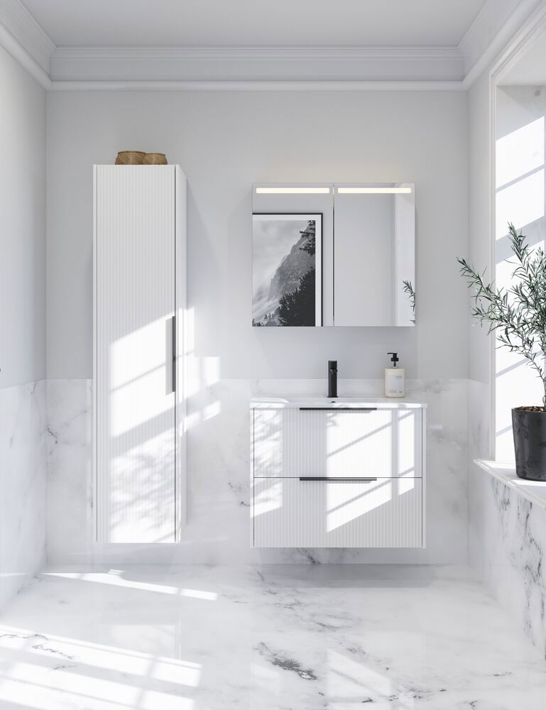 Løft din morgen til nye højder med Top spejlskabet. Dette spejlskab har en stribe af lys placeret øverst, og indeni spejlskabet finder du både masser af plads til opbevaring samt en stikkontakt med afbryder. Du får altså her meget mere end bare end man lige forventer. Spejlskabet fås selvfølgelig med gavle i flotte farver, så du kan matche spejlskabet til dit badeværelsesmøbler og resten af badeværelset.