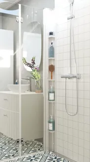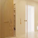 Dansani Tower er en innovativ løsning, der giver enestående opbevaringsplads i bruseren uden at gå på kompromis med æstetikken. Dette intelligente opbevaringssystem kan kombineres sømløst med Dansanis Match døre og vægge for at skabe en sammenhængende og stilfuld bruserløsning. Tower har 5 flytbare hylder, der er perfekte til at organisere de produkter og plejeartikler, som du benytter i din bruser. For at få plads til Tower, skal du blot vælge en væg eller dør, der er 10 cm smallere. Dansani Tower er den ideelle løsning for dem, der ønsker at optimere pladsen i deres bruser uden at gå på kompromis med stil og funktionalitet. Med Tower får du både praktisk opbevaringsplads og en elegant bruseroplevelse, der giver dig en fornemmelse af velvære og orden i dit baderum.