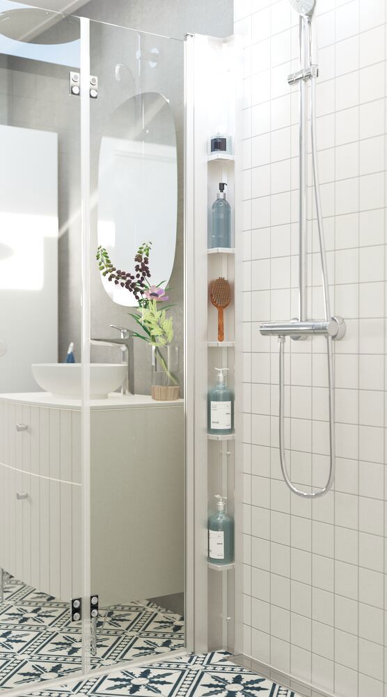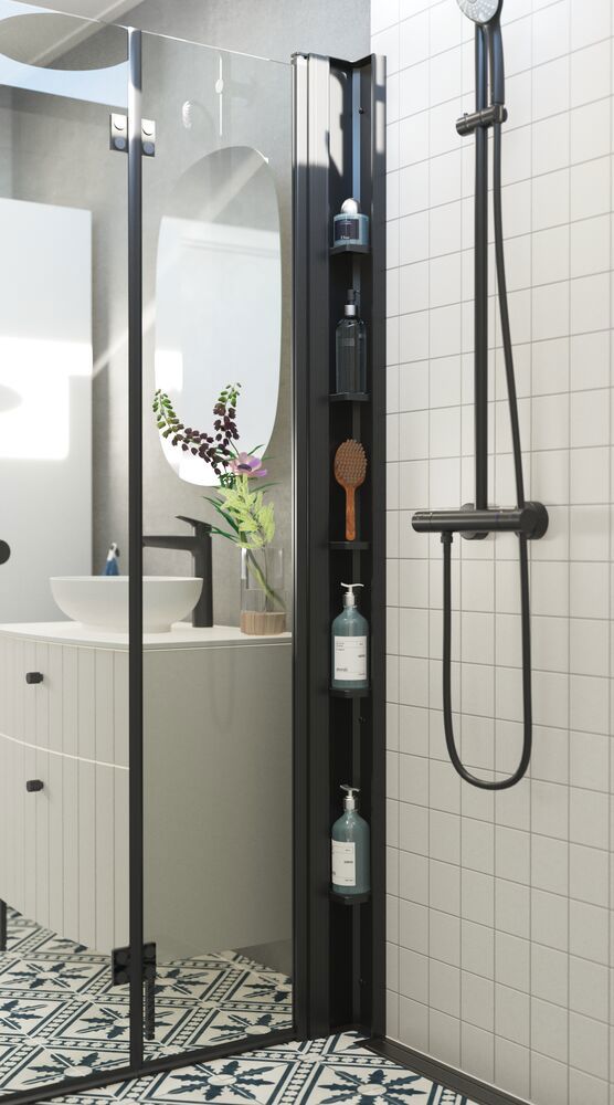 Dansani Tower er en innovativ løsning, der giver enestående opbevaringsplads i bruseren uden at gå på kompromis med æstetikken. Dette intelligente opbevaringssystem kan kombineres sømløst med Dansanis Match døre og vægge for at skabe en sammenhængende og stilfuld bruserløsning. Tower har 5 flytbare hylder, der er perfekte til at organisere de produkter og plejeartikler, som du benytter i din bruser. For at få plads til Tower, skal du blot vælge en væg eller dør, der er 10 cm smallere. Dansani Tower er den ideelle løsning for dem, der ønsker at optimere pladsen i deres bruser uden at gå på kompromis med stil og funktionalitet. Med Tower får du både praktisk opbevaringsplads og en elegant bruseroplevelse, der giver dig en fornemmelse af velvære og orden i dit baderum.