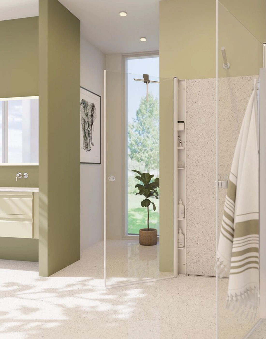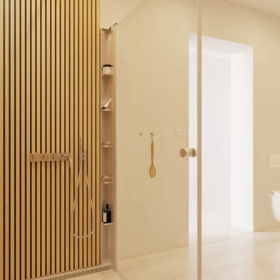 Dansani Tower er en innovativ løsning, der giver enestående opbevaringsplads i bruseren uden at gå på kompromis med æstetikken. Dette intelligente opbevaringssystem kan kombineres sømløst med Dansanis Match døre og vægge for at skabe en sammenhængende og stilfuld bruserløsning. Tower har 5 flytbare hylder, der er perfekte til at organisere de produkter og plejeartikler, som du benytter i din bruser. For at få plads til Tower, skal du blot vælge en væg eller dør, der er 10 cm smallere. Dansani Tower er den ideelle løsning for dem, der ønsker at optimere pladsen i deres bruser uden at gå på kompromis med stil og funktionalitet. Med Tower får du både praktisk opbevaringsplads og en elegant bruseroplevelse, der giver dig en fornemmelse af velvære og orden i dit baderum.