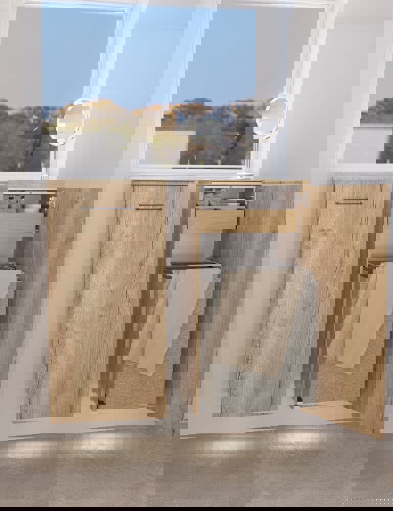 Opdag den funktionalitet, som underskabet med glat front i Version B tilbyder. Med en bredde på 40 cm og dybde på 35 cm er dette underskab designet med en praktisk udtræksbakke og en vasketøjspose, hvilket skaber ekstra opbevaringsplads til både kosmetik og vasketøj. De smarte løsninger sikrer, at du nemt kan holde orden på dit badeværelse og har alt ved hånden, når du har brug for det. Den glatte front tilføjer et stilrent design, der vil løfte din badeværelsesindretning, samtidig med at det tilbyder optimal opbevaringsplads. OBS: Der er et opstartstillæg (BI1) til produkter med valgfri farve. Det betales én gang pr. valgfri farve uanset antal produkter. Husk at tilvælge de små praktiske ting til dine badeværelsesmøbler, som du dagligt vil glæde dig over. Fx lys i skuffer og skabe, indbygget el-stik og dæmpet sensorlys under møblet, som guider det natlige badeværelsesbesøg. Tilvalg bestilles samtidig med dine møbler.
