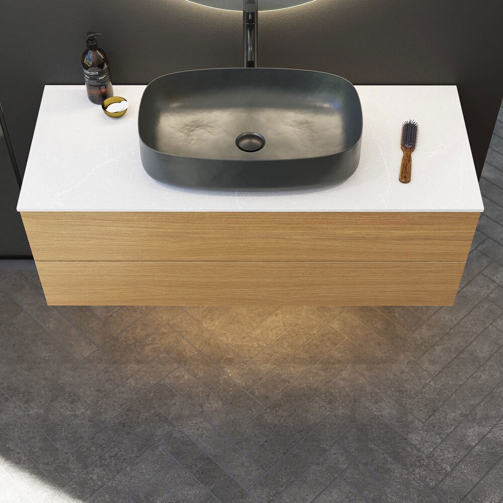 Dansani Calidris Unique bordpladen, udført i Silestone, er en imponerende sammensmeltning af æstetik og holdbarhed, der transformerer dit badeværelse. Ud over at være smuk at se på, er denne bordplade fremstillet af det slidstærke Silestone-materiale, der tåler daglig brug og bevarer sin skønhed. Bordpladen fås på specialmål, så du kan skræddersy bordpladen til at passe til dine behov og til dit badeværelse. Farven på bordpladen kan afvige fra det viste billede, så vi anbefaler, at du ser en fysisk prøve hos en forhandler, inden dit køb.