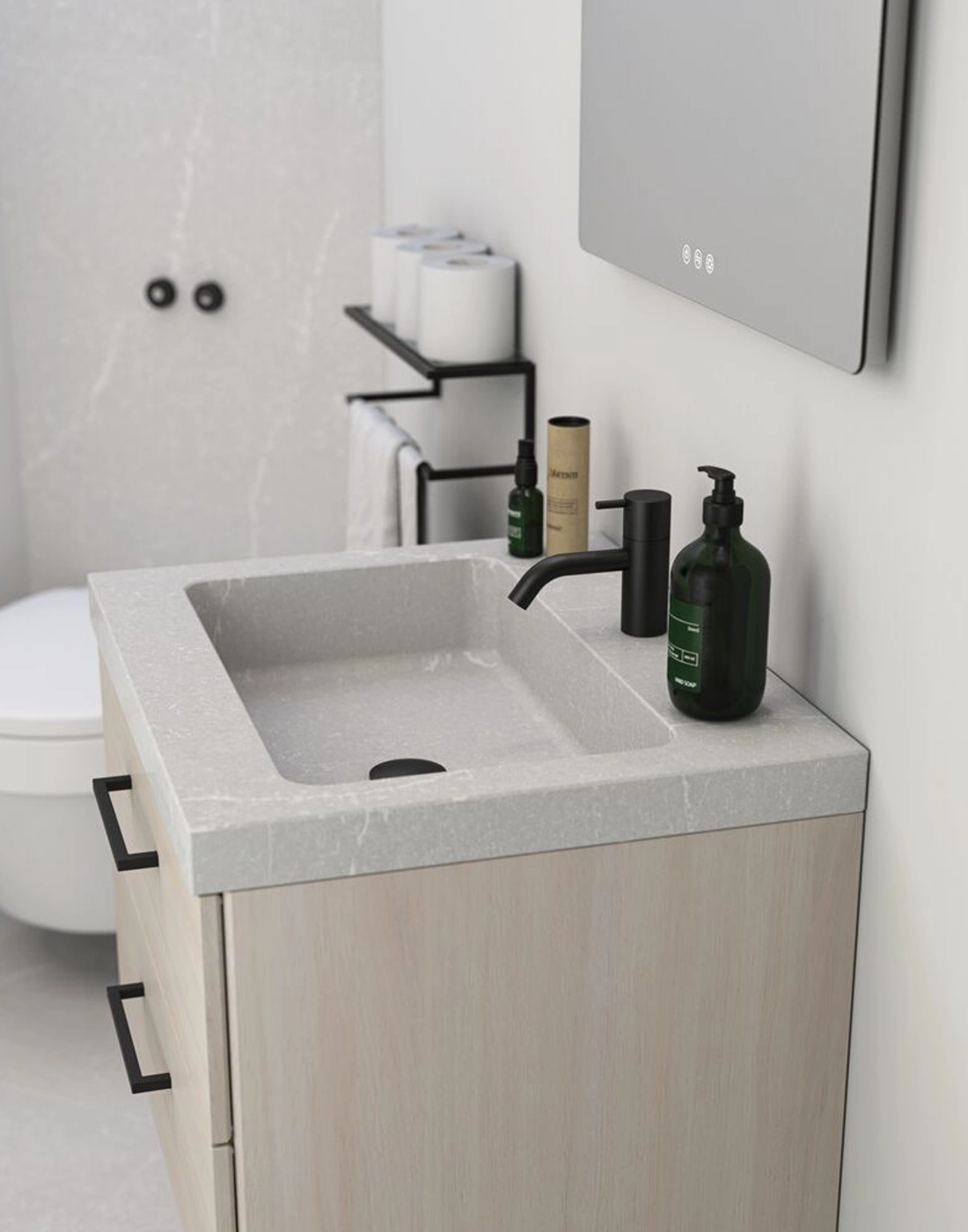 Dansani Calidris Unique håndvasken kombinerer elegance med holdbarhed takket være sin produktion i Silestone-materialet. Denne håndvask tilbyder ikke blot enestående æstetik, men også en pålidelig ydeevne. Silestone's unikke kombination af skønhed og styrke sikrer, at din Calidris Unique håndvask forbliver smuk og funktionel i årevis. Denne håndvask er et perfekt eksempel på skønhed, der møder bæredygtighed i badeværelsesdesignet. Farven på vasken kan afvige fra det viste billede, så vi anbefaler, at du ser en fysisk prøve hos en forhandler, inden dit køb.