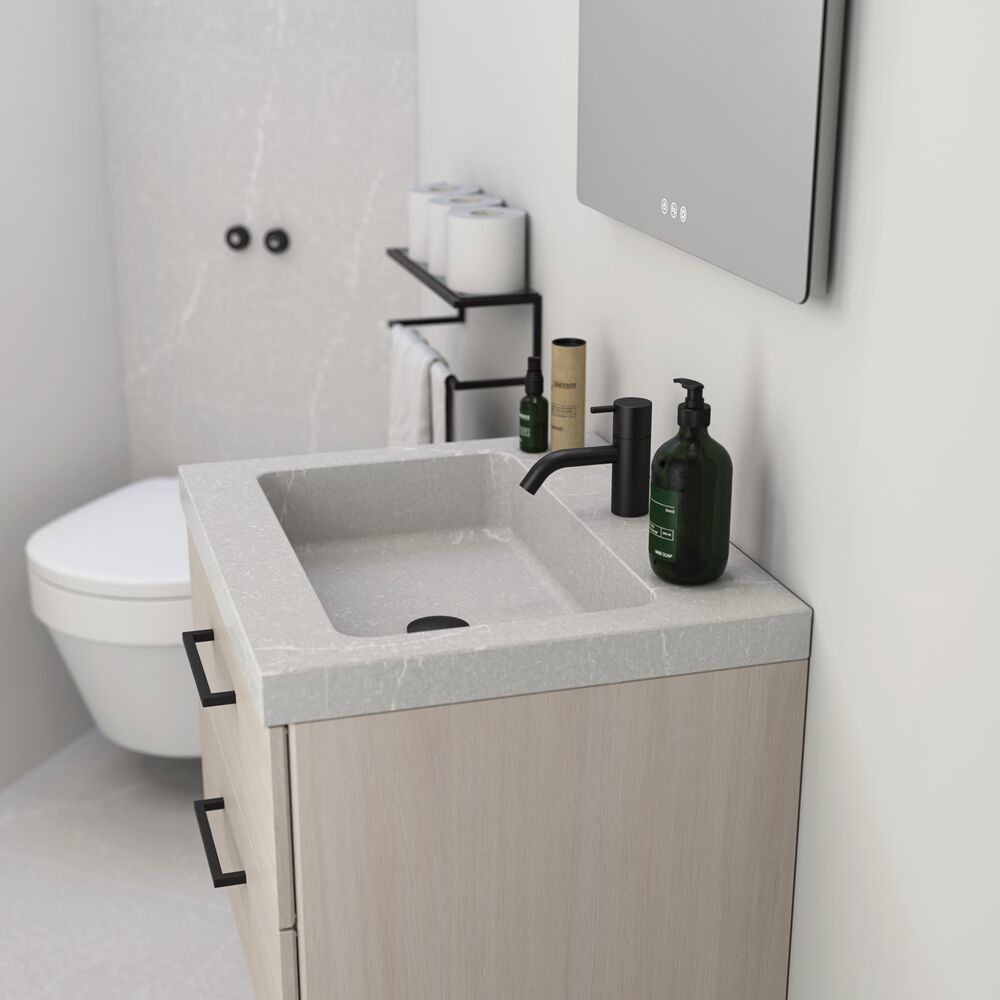 Dansani Calidris Unique håndvasken kombinerer elegance med holdbarhed takket være sin produktion i Silestone-materialet. Denne håndvask tilbyder ikke blot enestående æstetik, men også en pålidelig ydeevne. Silestone's unikke kombination af skønhed og styrke sikrer, at din Calidris Unique håndvask forbliver smuk og funktionel i årevis. Denne håndvask er et perfekt eksempel på skønhed, der møder bæredygtighed i badeværelsesdesignet. Farven på vasken kan afvige fra det viste billede, så vi anbefaler, at du ser en fysisk prøve hos en forhandler, inden dit køb.