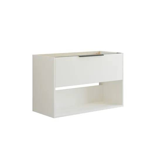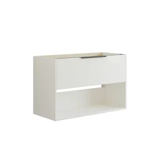 Her får du både opbevaringsplads og mulighed for at udstille dine yndlingsting. Dette vaskeskab har en praktisk skuffe samt et åbent rum, der er perfekt til at vise dine pæne håndklæder eller dekorative elementer. Fås i de tre elegante farver: hvid, sand og lyseblå. Skuffen er rummelig, og det tilhørende greb er monteret, så det er klar til brug.