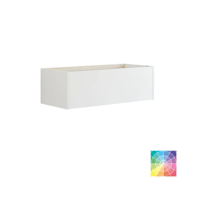 Skab et indbydende fristed på dit badeværelse med dette stilfulde vaskeskab med glat front. Med én dyb skuffe, der måler 32 cm i højden, er dette skab designet til at optimere pladsen, uanset hvor lille dit badeværelse måtte være. Den glatte skuffe glider nemt, hvilket giver dig hurtig adgang til dine daglige fornødenheder. Det minimalistiske look og det moderne design gør dette vaskeskab til et perfekt valg for dem, der ønsker at skabe en elegant og ryddelig atmosfære. OBS: Der er et opstartstillæg (BI1) til produkter med valgfri farve. Det betales én gang pr. valgfri farve uanset antal produkter. Husk at tilvælge de små praktiske ting til dine badeværelsesmøbler, som du dagligt vil glæde dig over. Fx lys i skuffer og skabe, indbygget el-stik og dæmpet sensorlys under møblet, som guider det natlige badeværelsesbesøg. Tilvalg bestilles samtidig med dine møbler.