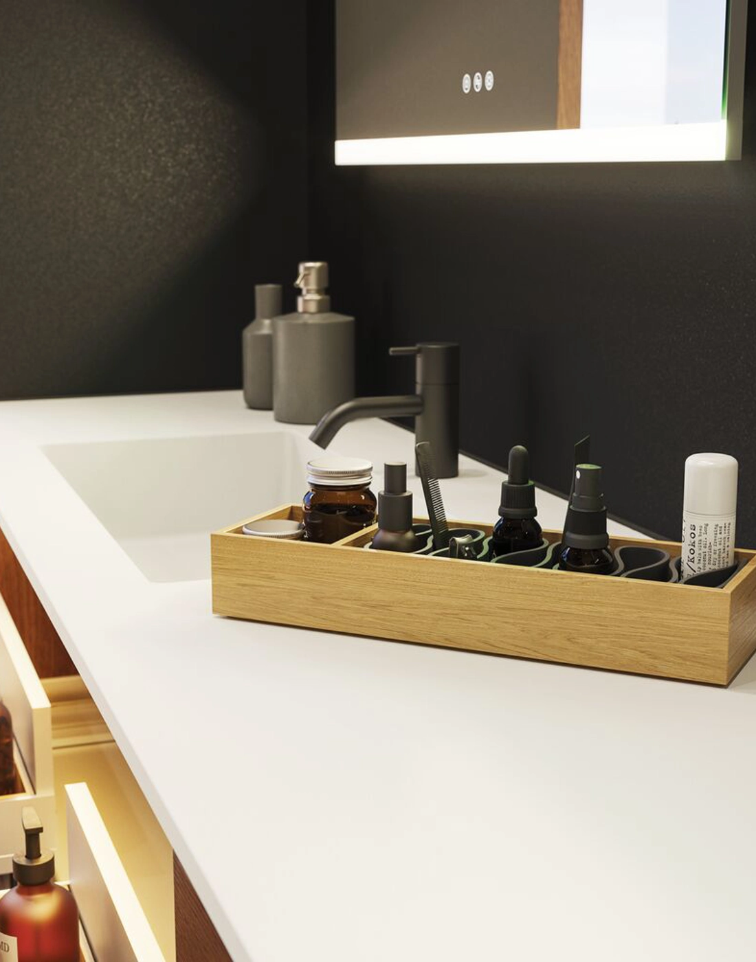 Opgrader dit badeværelse med stil og funktionalitet med et vaskeskab. Det smarte design med en enkelt skuffe giver dig den perfekte opbevaringsløsning til dine badeværelsesprodukter. Hold dit badeværelse ryddeligt og organiseret med dette elegante skab, der passer til enhver indretning. Vaskeskabet fås i flere forskellige farver, så du frit kan vælge dét, der passer bedst til din stil. OBS: Der er et opstartstillæg (BI1) til produkter med valgfri farve. Det betales én gang pr. valgfri farve uanset antal produkter. Husk at tilvælge de små praktiske ting til dine badeværelsesmøbler, som du dagligt vil glæde dig over. Fx lys i skuffer og skabe, indbygget el-stik og dæmpet sensorlys under møblet, som guider det natlige badeværelsesbesøg. Tilvalg bestilles samtidig med dine møbler.