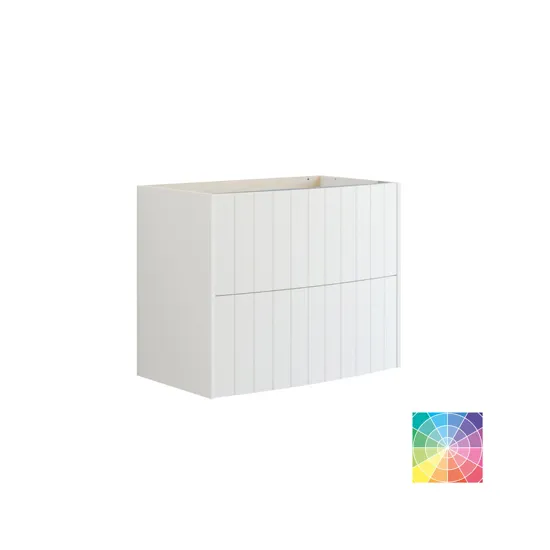 Disse vaskeskabe med 2 skuffer tilbyder et charmerende retro-design til dit badeværelse. De buede fronter har smukke riller, der giver et karakterfuldt udtryk. Skabene fås i flere forskellige farver, så du kan vælge den farve, der passer bedst til din personlige stil. Udover deres smukke udseende er skabene også praktiske med to rummelige skuffer til opbevaring af dine fornødenheder. Tilføj tidløs elegance til dit badeværelse med disse vaskeskabe og nyd det unikke præg, de bringer til rummet. OBS: Der er et opstartstillæg (BI1) til produkter med valgfri farve. Det betales én gang pr. valgfri farve uanset antal produkter. Husk at tilvælge de små praktiske ting til dine badeværelsesmøbler, som du dagligt vil glæde dig over. Fx lys i skuffer og skabe, indbygget el-stik og dæmpet sensorlys under møblet, som guider det natlige badeværelsesbesøg. Tilvalg bestilles samtidig med dine møbler.