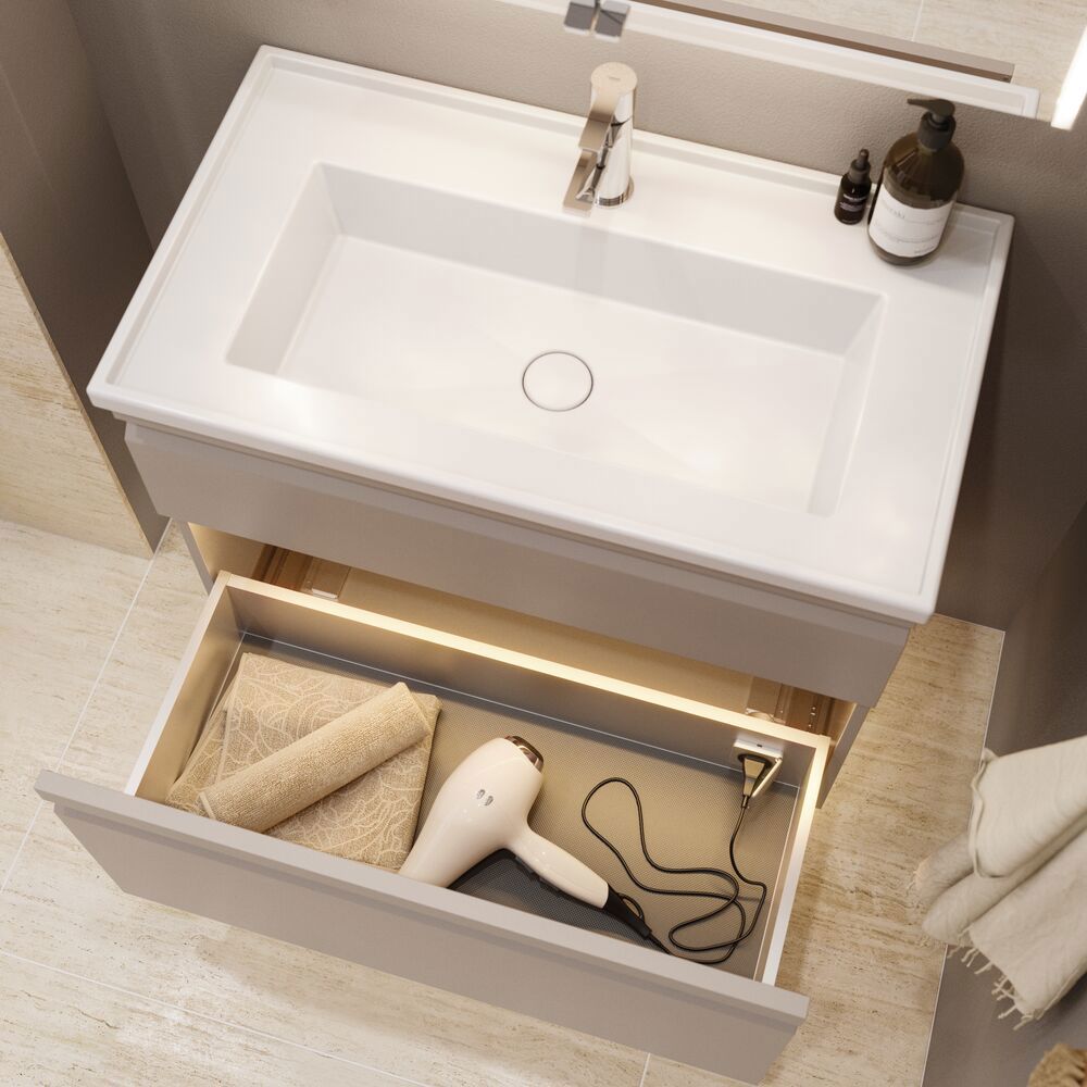 Her er overblikket over de vaske, der passer til det vaskeskab, du har valgt. Husk at vælge bordplade, hvis du vælger en bordstående vask.