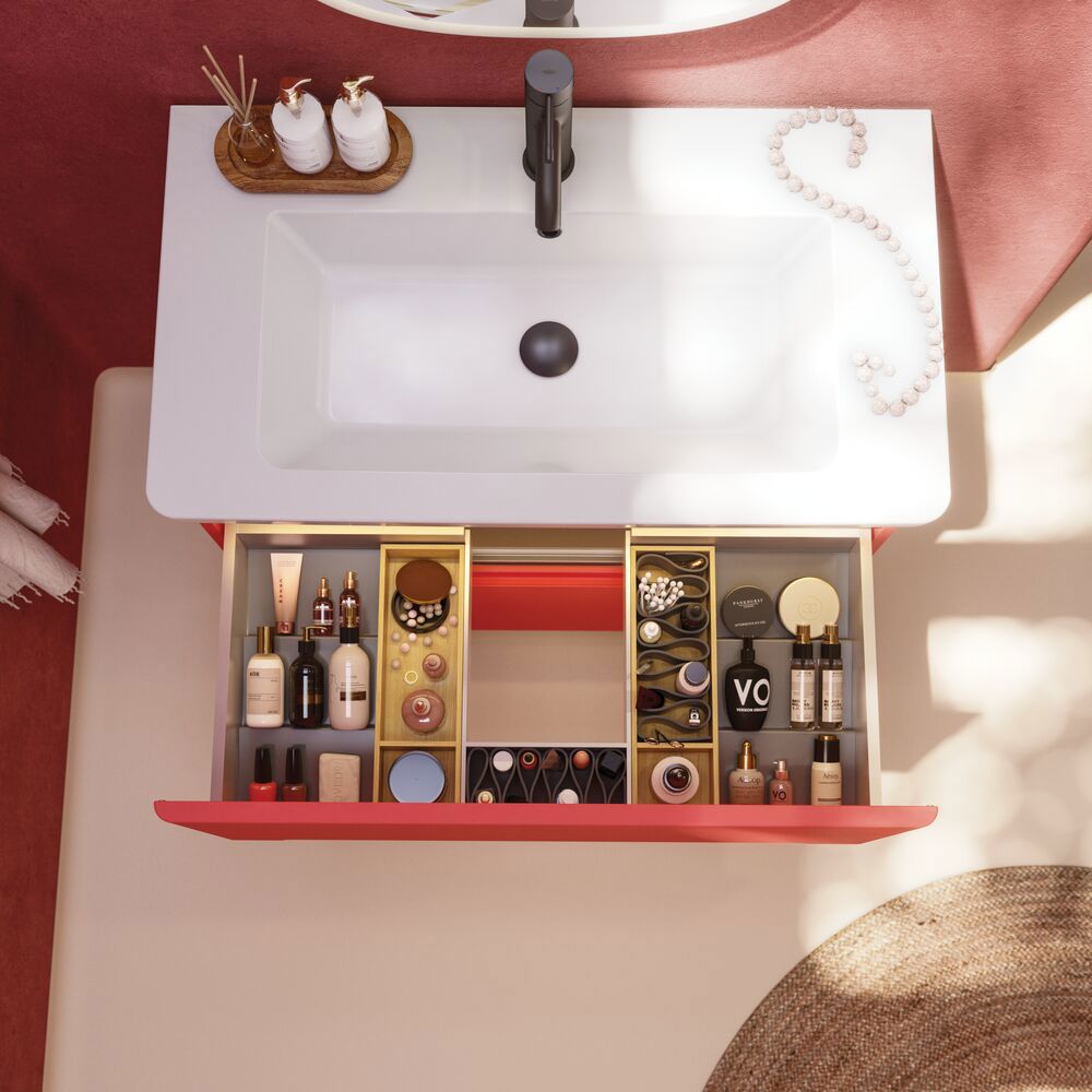 Skab en unik stil i dit badeværelse med vaskeskabet med lamelfront. De to skuffer, hver 32 cm høje, giver dig optimal opbevaringsplads til at holde orden i dine badeværelsesartikler. Lamelfronten giver et karakterfuldt og moderne look, der skiller sig ud og tilføjer personlighed til dit rum. Dette skab kombinerer funktionalitet med æstetik og gør det til den ideelle løsning for dem, der ønsker at gøre deres badeværelse både praktisk og stilfuldt. Husk at tilvælge de små praktiske ting til dine badeværelsesmøbler, som du dagligt vil glæde dig over. Fx lys i skuffer og skabe, indbygget el-stik og dæmpet sensorlys under møblet, som guider det natlige badeværelsesbesøg. Tilvalg bestilles samtidig med dine møbler.