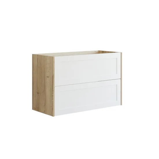 Forny dit badeværelse med vaskeskabet med rammefront. Dette skab har to rummelige skuffer, hver 32 cm høje, der giver rigelig opbevaringsplads til dine badeværelsesartikler. Rammefronten tilfører en moderne og stilfuld dimension til dit badeværelse, hvilket gør det til en æstetisk tilføjelse. Det tidløse design sikrer, at skabet passer ind i enhver indretning og bidrager til en velorganiseret og elegant atmosfære. OBS: Der er et opstartstillæg (BI1) til produkter med valgfri farve. Det betales én gang pr. valgfri farve uanset antal produkter. Husk at tilvælge de små praktiske ting til dine badeværelsesmøbler, som du dagligt vil glæde dig over. Fx lys i skuffer og skabe, indbygget el-stik og dæmpet sensorlys under møblet, som guider det natlige badeværelsesbesøg. Tilvalg bestilles samtidig med dine møbler.