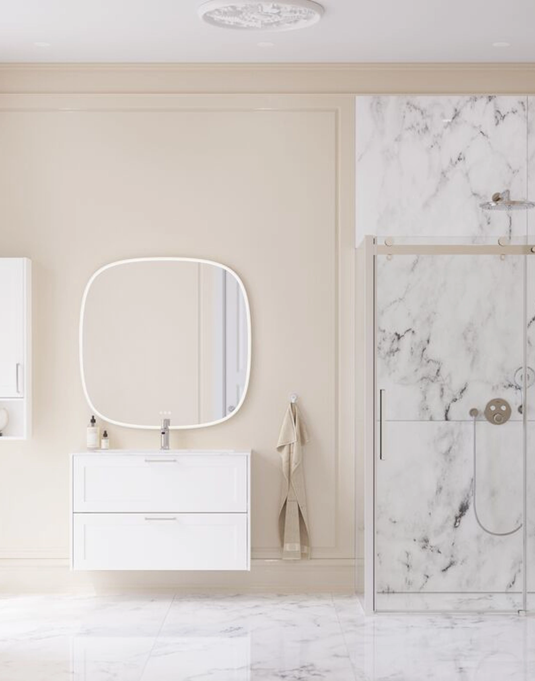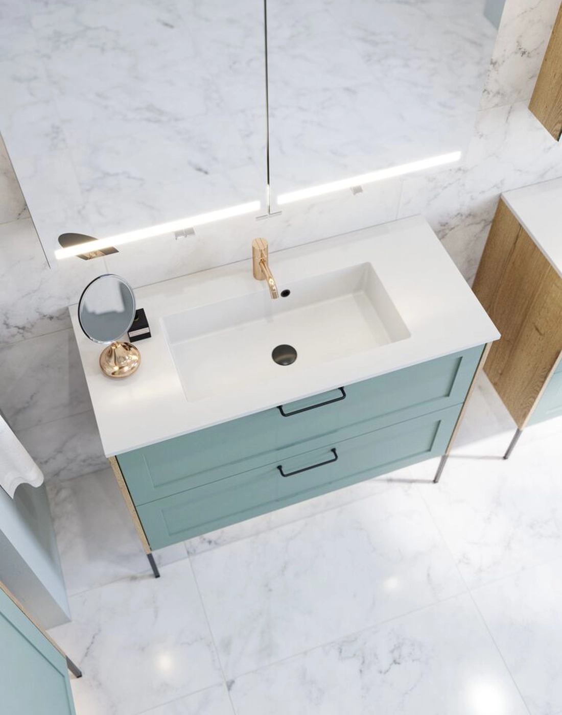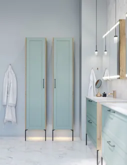 Forny dit badeværelse med vaskeskabet med rammefront. Dette skab har to rummelige skuffer, hver 32 cm høje, der giver rigelig opbevaringsplads til dine badeværelsesartikler. Rammefronten tilfører en moderne og stilfuld dimension til dit badeværelse, hvilket gør det til en æstetisk tilføjelse. Det tidløse design sikrer, at skabet passer ind i enhver indretning og bidrager til en velorganiseret og elegant atmosfære. OBS: Der er et opstartstillæg (BI1) til produkter med valgfri farve. Det betales én gang pr. valgfri farve uanset antal produkter. Husk at tilvælge de små praktiske ting til dine badeværelsesmøbler, som du dagligt vil glæde dig over. Fx lys i skuffer og skabe, indbygget el-stik og dæmpet sensorlys under møblet, som guider det natlige badeværelsesbesøg. Tilvalg bestilles samtidig med dine møbler.
