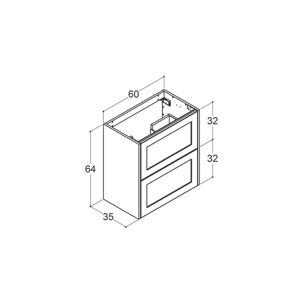 Forny dit badeværelse med vaskeskabet med rammefront. Dette skab har to rummelige skuffer, hver 32 cm høje, der giver rigelig opbevaringsplads til dine badeværelsesartikler. Rammefronten tilfører en moderne og stilfuld dimension til dit badeværelse, hvilket gør det til en æstetisk tilføjelse. Det tidløse design sikrer, at skabet passer ind i enhver indretning og bidrager til en velorganiseret og elegant atmosfære. OBS: Der er et opstartstillæg (BI1) til produkter med valgfri farve. Det betales én gang pr. valgfri farve uanset antal produkter. Husk at tilvælge de små praktiske ting til dine badeværelsesmøbler, som du dagligt vil glæde dig over. Fx lys i skuffer og skabe, indbygget el-stik og dæmpet sensorlys under møblet, som guider det natlige badeværelsesbesøg. Tilvalg bestilles samtidig med dine møbler.