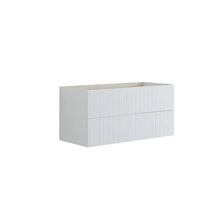 Forny dit badeværelse med vaskeskab med 2 skuffer. Dette stilfulde skab har en højde på 48 cm og en dybde på 44 cm, perfekt til at holde orden på dine badeværelsesartikler. Den riflede front giver skabet et unikt og moderne udseende, der tilføjer karakter til dit rum. Vælg mellem forskellige farver for at finde den perfekte match til din stil. Skabet tilbyder praktisk opbevaring, så du nemt kan organisere dine ting. Vaskeskab med 2 skuffer giver både funktionalitet og skønhed, hvilket gør det til en fremragende tilføjelse til dit badeværelse. Gør dit rum mere organiseret og stilfuldt med dette fantastiske vaskeskab. OBS: Der er et opstartstillæg (BI1) til produkter med valgfri farve. Det betales én gang pr. valgfri farve uanset antal produkter. Husk at tilvælge de små praktiske ting til dine badeværelsesmøbler, som du dagligt vil glæde dig over. Fx lys i skuffer og skabe, indbygget el-stik og dæmpet sensorlys under møblet, som guider det natlige badeværelsesbesøg. Tilvalg bestilles samtidig med dine møbler.