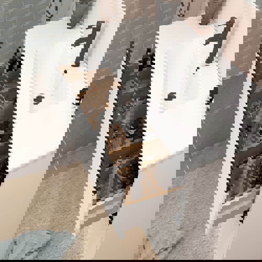 Vaskeskab med 2 skuffer, smal rillet