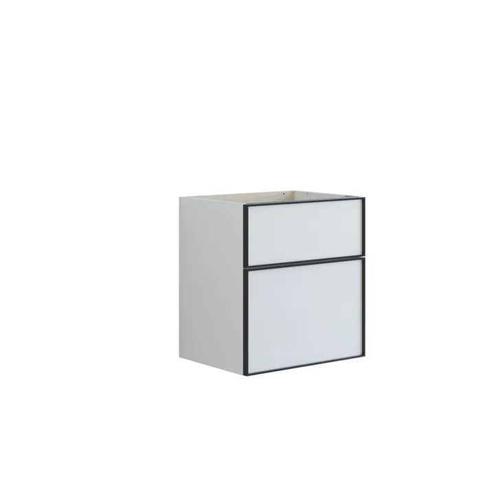Vaskeskabet med 2 skuffer er 64 cm højt og har en ekstra høj bundskuffe, der giver dig mere opbevaringsplads. Den stilfulde sorte ramme omkring skufferne tilføjer et moderne og elegant præg. Vælg mellem flere farver for at tilpasse skabet til din personlige stil. Dette vaskeskab gør det nemt at organisere dine badeværelsesartikler og holde alt ryddeligt. Vaskeskabet kombinerer praktisk funktionalitet med et smukt design, hvilket gør det til en perfekt tilføjelse til dit badeværelse. Gør dit rum mere organiseret og stilfuldt med dette fantastiske vaskeskab. OBS: Der er et opstartstillæg (BI1) til produkter med valgfri farve. Det betales én gang pr. valgfri farve uanset antal produkter. Husk at tilvælge de små praktiske ting til dine badeværelsesmøbler, som du dagligt vil glæde dig over. Fx lys i skuffer og skabe, indbygget el-stik og dæmpet sensorlys under møblet, som guider det natlige badeværelsesbesøg. Tilvalg bestilles samtidig med dine møbler.