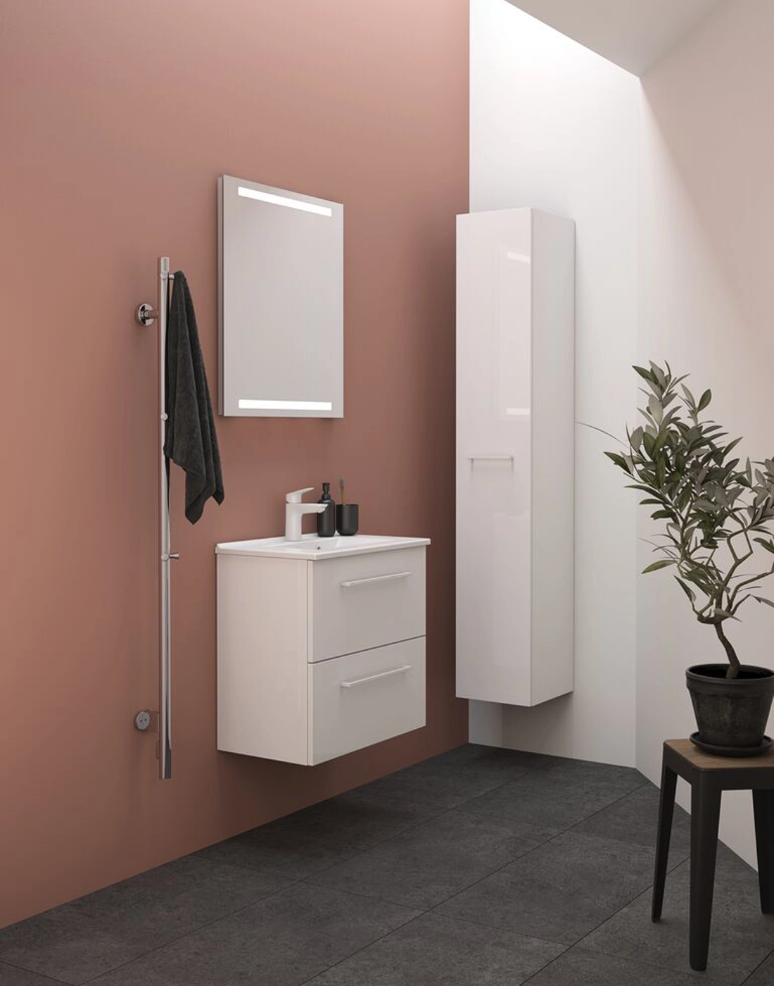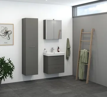 Dansani Mido+ er følelsen af luksus på en prisvenlig måde, og her får du et vaskeskab med 2 skuffer. Dette flotte vaskeskab er kun 35 cm dybt, og er derfor designet til at passe perfekt ind i mindre badeværelser eller charmerende gæstetoiletter. Dansani Mido+ vaskeskab er dansk design til små penge, og her finder du selvfølgelig også flere smarte tilvalgsmuligheder som fx lys i skuffen. Med Dansani Mido+ vaskeskabet med 2 skuffer får du ikke bare funktionalitet og opbevaring, men også friheden til at skabe dit drømmebadeværelse. Vær obs på at dette vaskeskab har udskæring til gulvafløb.  Til alle Mido+ skabe medfølger det helt klassiske Base greb i krom. Du kan tilvælge et andet greb for et andet look, men husk at det skal bestilles sammen med dine møbler. Husk at tilvælge de små praktiske ting til dine badeværelsesmøbler, som du dagligt vil glæde dig over. Fx lys og træbakker til dine skuffer.