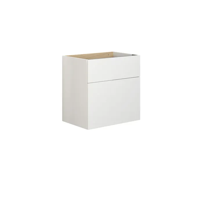 Dansani Calidris vaskeskab med 2 skuffer er en lækker fusion af stil og funktionalitet til dit badeværelse. Dette vaskeskab er 60 cm højt, hvilket giver dig en lidt højere bundskuffe og derved mere plads til opbevaring. Det minimalistiske design og rene linjer i Calidris vaskeskabet tilføjer en sofistikeret æstetik til dit badeværelsesmiljø. De to rummelige skuffer giver ikke kun praktisk opbevaring, men giver dig også mulighed for at holde ro og orden på badeværelset. Med fokus på både funktionalitet og design er Dansani Calidris vaskeskab med 2 skuffer det ideelle valg til dig, der vil have en elegant og velorganiseret løsning til badeværelset. OBS: Der er et opstartstillæg (BI1) til produkter med eg og valgfri farve. Betales én gang pr. eg og valgfri farve uanset antal produkter. Husk at tilvælge de små praktiske ting til dine badeværelsesmøbler, som du dagligt vil glæde dig over. Fx lys i skuffer og skabe, indbygget el-stik og dæmpet sensorlys under møblet, som guider det natlige badeværelsesbesøg. Tilvalg bestilles samtidig med dine møbler.