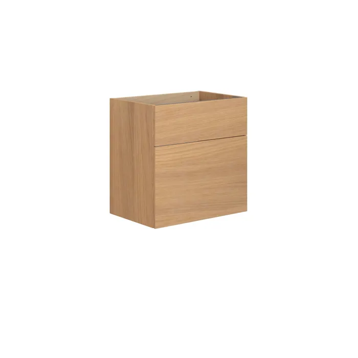 Dansani Calidris vaskeskab med 2 skuffer er en lækker fusion af stil og funktionalitet til dit badeværelse. Dette vaskeskab er 60 cm højt, hvilket giver dig en lidt højere bundskuffe og derved mere plads til opbevaring. Det minimalistiske design og rene linjer i Calidris vaskeskabet tilføjer en sofistikeret æstetik til dit badeværelsesmiljø. De to rummelige skuffer giver ikke kun praktisk opbevaring, men giver dig også mulighed for at holde ro og orden på badeværelset. Med fokus på både funktionalitet og design er Dansani Calidris vaskeskab med 2 skuffer det ideelle valg til dig, der vil have en elegant og velorganiseret løsning til badeværelset. OBS: Der er et opstartstillæg (BI1) til produkter med eg og valgfri farve. Betales én gang pr. eg og valgfri farve uanset antal produkter. Husk at tilvælge de små praktiske ting til dine badeværelsesmøbler, som du dagligt vil glæde dig over. Fx lys i skuffer og skabe, indbygget el-stik og dæmpet sensorlys under møblet, som guider det natlige badeværelsesbesøg. Tilvalg bestilles samtidig med dine møbler.