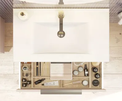 Få dobbelt op på opbevaringsplads med dette vaskeskab, der har 2 rummelige skuffer. Skabet er tilgængeligt i hvid, sand eller lyseblå og passer perfekt ind i ethvert nordisk inspireret badeværelse. De to skuffer giver dig rigelig plads til både små og store toiletartikler, og grebene er monteret, så skabet er klar til brug med det samme.