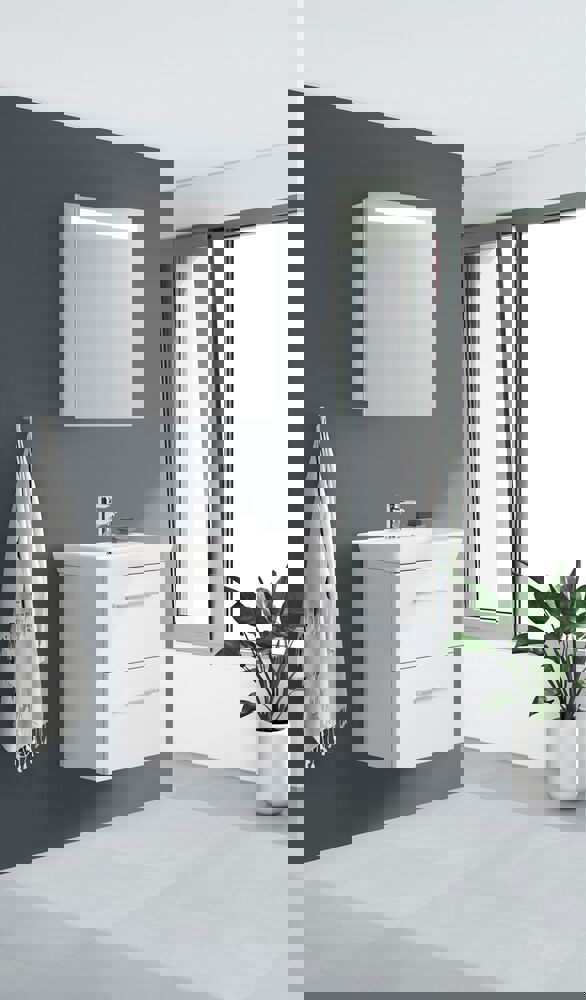 Opgrader dit badeværelse med et budgetvenligt valg - Dansani Mido+ vaskeskab med 2 skuffer. Med en dybde på 35 cm er dette vaskeskab perfekt på de mindre badeværelser, på gæstetoilettet eller i sommerhuset. Derudover har dette vaskeskab udskæring til vægafløb. Dansani Mido+ vaskeskabet er overkommeligt prissat, og her kan du også tilvælge fx lys i skuffen og træbakker for bedre overblik og organisation i badeværelset.  Til alle Mido+ skabe medfølger det helt klassiske Base greb i krom. Du kan tilvælge et andet greb for et andet look, men husk at det skal bestilles sammen med dine møbler. Husk at tilvælge de små praktiske ting til dine badeværelsesmøbler, som du dagligt vil glæde dig over. Fx lys og træbakker til dine skuffer.