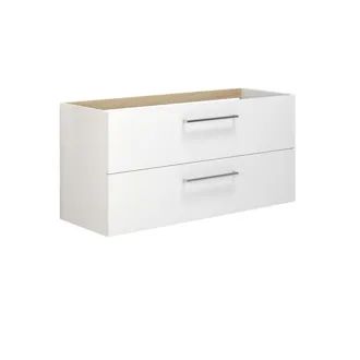 Her får du et skønt vaskeskab fra Dansani Mido+ med 2 skuffer og plads til en dobbeltvask. Vaskeskabet er 120 cm bredt og er den rigtige løsning til dig, der har lidt ekstra plads på badeværelset. Hertil kan du nemlig både bruge en enkeltvask på 120 cm, samt en dobbeltvask på 120 cm. Med en dobbeltvask kan I være flere ved vasken på samme tid, og I kan endda have hver jeres vask. Vaskeskabet fås som sagt med 2 skuffer, som giver ekstra god opbevaring af alle dine ting på badeværelset. Til alle Mido+ skabe medfølger det helt klassiske Base greb i krom. Du kan tilvælge et andet greb for et andet look, men husk at det skal bestilles sammen med dine møbler. Husk at tilvælge de små praktiske ting til dine badeværelsesmøbler, som du dagligt vil glæde dig over. Fx lys og træbakker til dine skuffer.