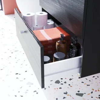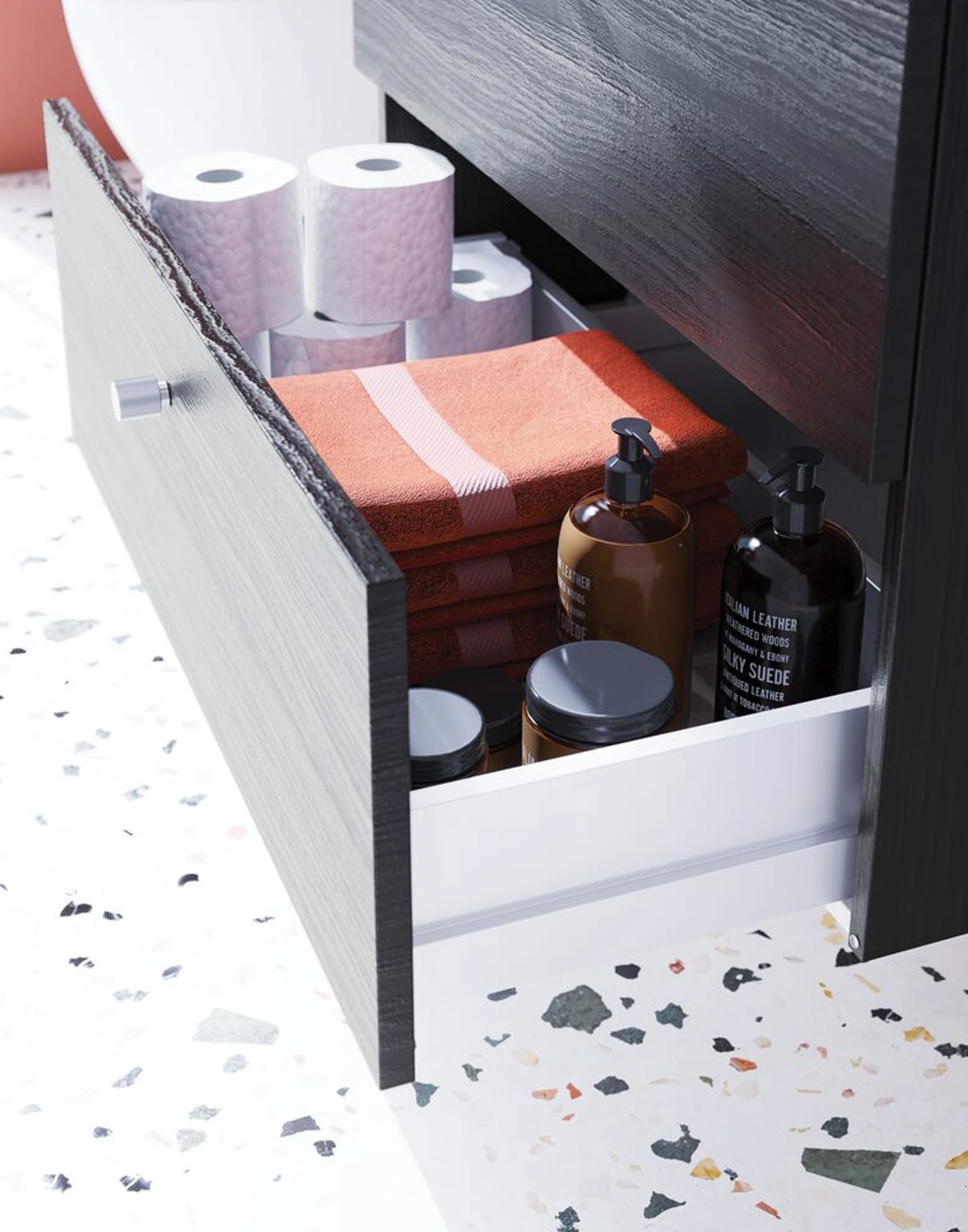 Dansani Mido+ vaskeskabet med 2 skuffer er dansk design til en overkommelig pris. Mido+ er vores prisvenlige serie, men her er der ikke gået på kompromis med hverken design eller materialer. Og i dette skønne vaskeskab får du hele 2 skuffer til opbevaring af dine badeværelsesartikler, og selvfølgelig fås dette vaskeskab også med flere forskellige tilvalgsmuligheder. Dansani Mido+ vaskeskabet fås i et bredt udvalg af farver, så du kan få et vaskeskab, der matcher dit badeværelse og din personlige stil. Til alle Mido+ skabe medfølger det helt klassiske Base greb i krom. Du kan tilvælge et andet greb for et andet look, men husk at det skal bestilles sammen med dine møbler. Husk at tilvælge de små praktiske ting til dine badeværelsesmøbler, som du dagligt vil glæde dig over. Fx lys og træbakker til dine skuffer.