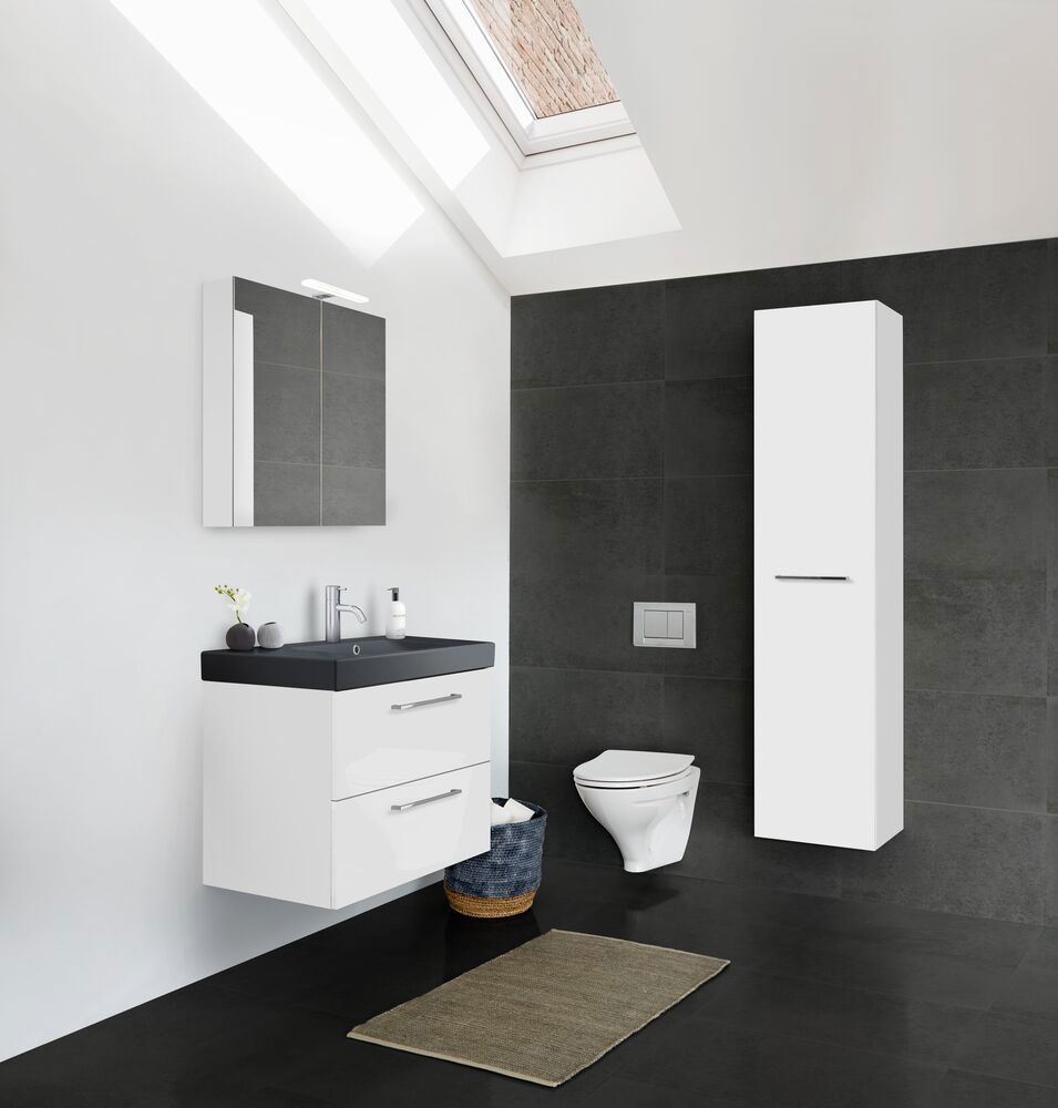 Dansani Mido+ er følelsen af luksus på en prisvenlig måde, og her får du et vaskeskab med 2 skuffer. Dette flotte vaskeskab er kun 35 cm dybt, og er derfor designet til at passe perfekt ind i mindre badeværelser eller charmerende gæstetoiletter. Dansani Mido+ vaskeskab er dansk design til små penge, og her finder du selvfølgelig også flere smarte tilvalgsmuligheder som fx lys i skuffen. Med Dansani Mido+ vaskeskabet med 2 skuffer får du ikke bare funktionalitet og opbevaring, men også friheden til at skabe dit drømmebadeværelse. Vær obs på at dette vaskeskab har udskæring til gulvafløb.  Til alle Mido+ skabe medfølger det helt klassiske Base greb i krom. Du kan tilvælge et andet greb for et andet look, men husk at det skal bestilles sammen med dine møbler. Husk at tilvælge de små praktiske ting til dine badeværelsesmøbler, som du dagligt vil glæde dig over. Fx lys og træbakker til dine skuffer.
